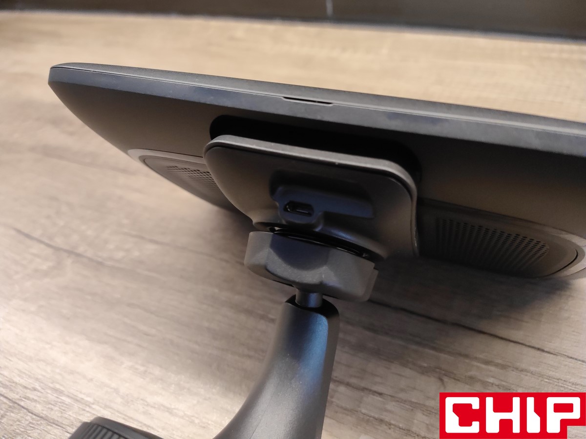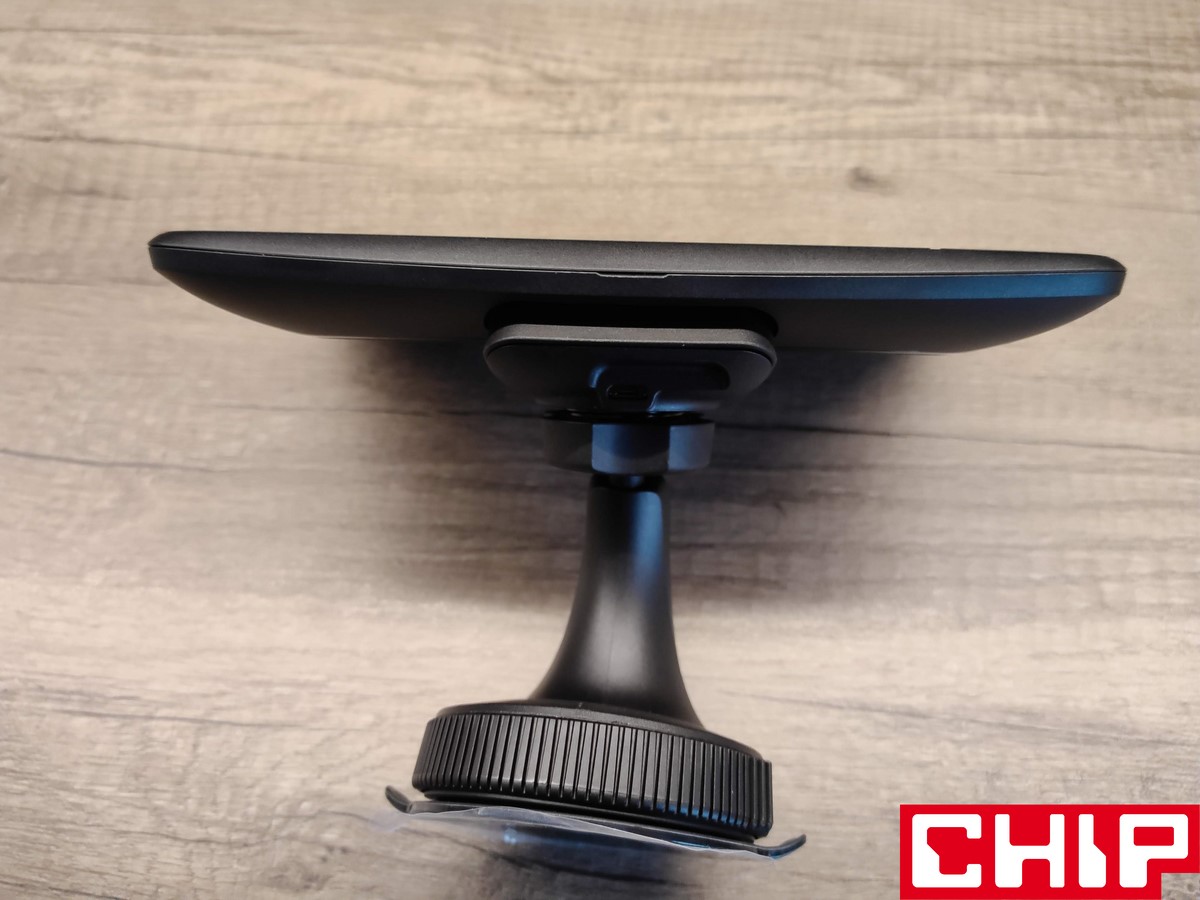 Jego montaż jest z kolei banalny – najpierw mocujemy solidne ramię na przyssawce do mniej więcej środka szyby, podłączamy do niej przewód z ładowarki samochodowej, wkładamy w nią tablet i finalnie regulujemy jego nachylenie na bazie prostego mechanizmu. Nie musicie bać się o stabilność całości, bo i przyssawka trzyma się szyby z odpowiednią siłą i sam tablet korzysta z solidnego mocowania zarówno blokadami plastikowych elementów, jak i magnesem.