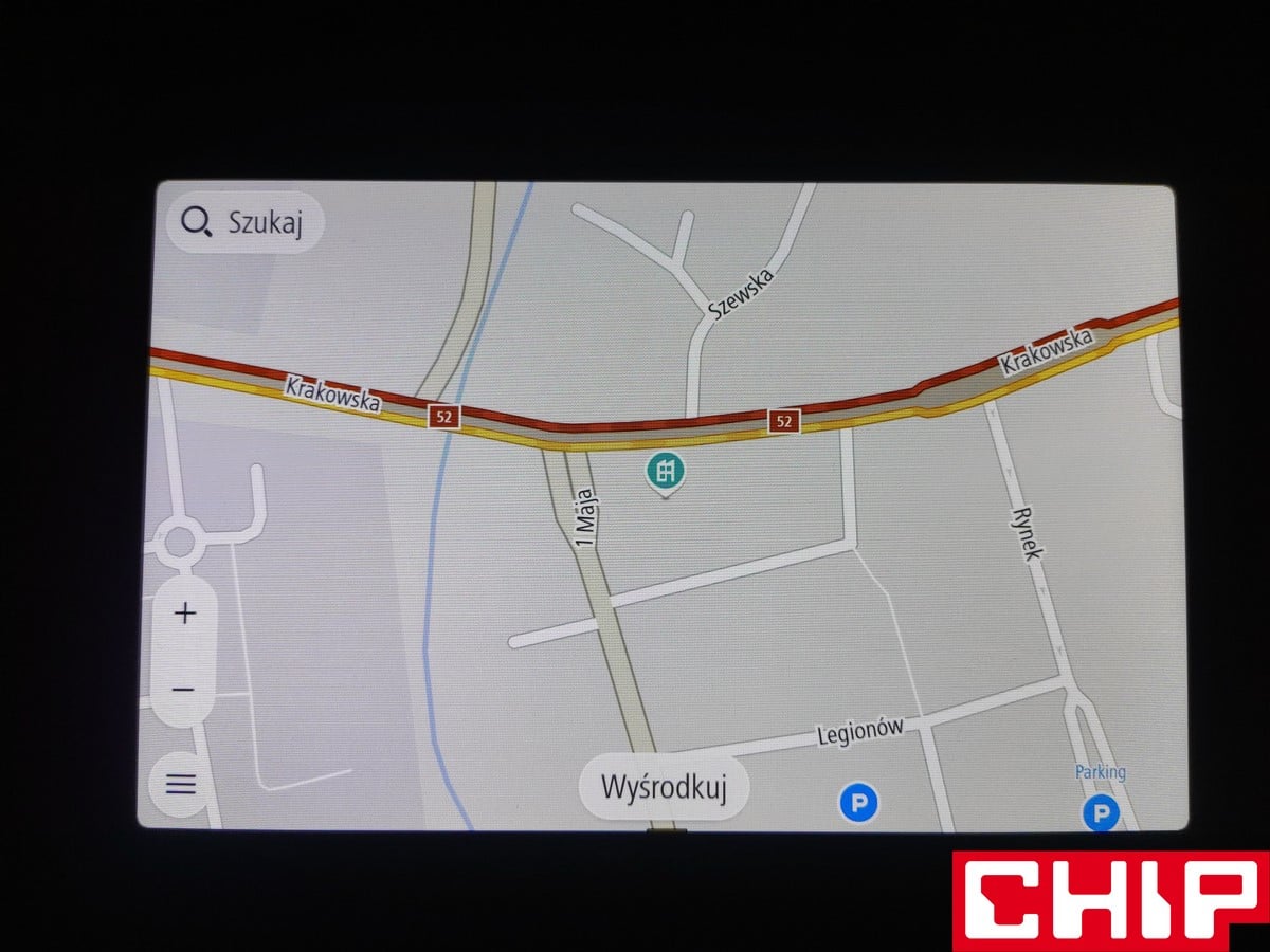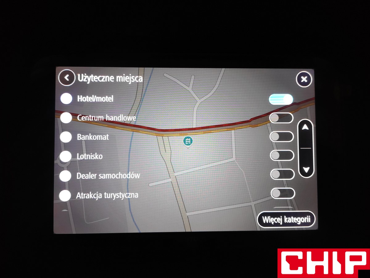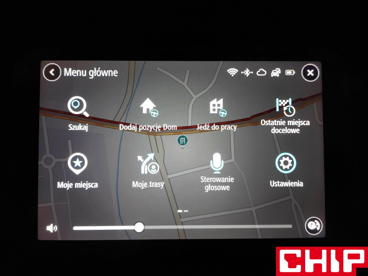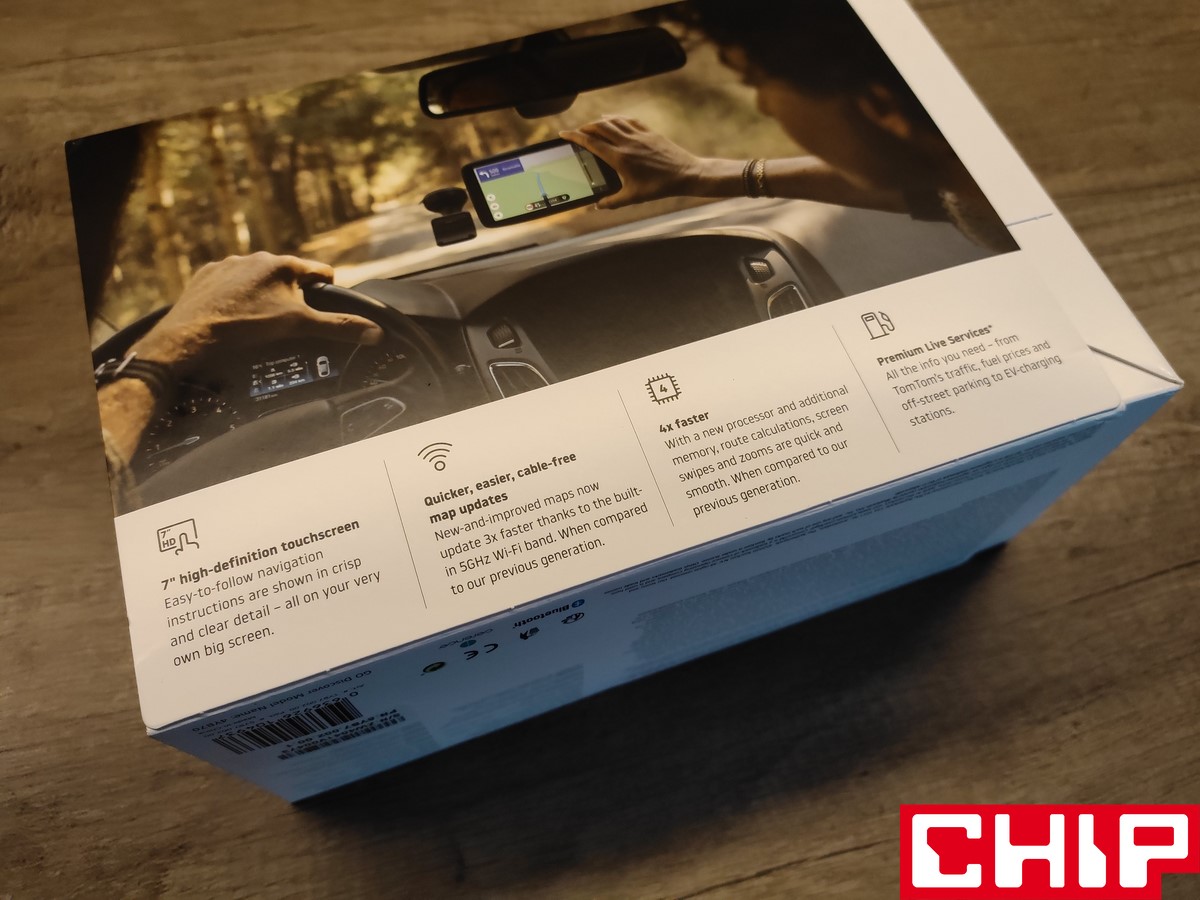 Producent wspomina też o 4-krotnie wydajniejszym procesorze w porównaniu z poprzednią generacją, ale szczegółów na jego temat nie zdradza. Musi to być jednak część jakiegoś SoC. Tablet może się też pochwalić łącznością Bluetooth z myślą o usługach TomTom, wbudowanymi mikrofonami do sterowania głosowego i modułem Wi-Fi 2,4/5 GHz. W naszej wersji nawigacja posiada 7-calowy ekran o rozdzielczości 1280 x 800 pikseli i dosyć grubych ramkach dookoła. Jasny, odpowiedniej jakości i o świetnych kątach widzenia – więcej po ekranie nawigacji samochodowej nie trzeba oczekiwać.