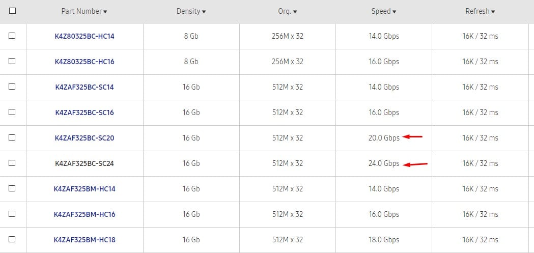 Te wydajniejsze GDDR6 Samsunga sprowadzają się do dwóch nowych układów o pojemności 2 GB każdy. Pierwszym jest 20 Gb/s wariant (K4ZAF325BC-SC20), a drugim znacznie bardziej imponujący 24 Gb/s (K4ZAF325BC-SC24). Łączy je to, że są zarówno nowe, jak i rozpoczęły swoją drogę w ręce producentów pokroju AMD, czy NVIDIA. To z kolei wskazuje jedno – nowe karty graficzne są na horyzoncie.