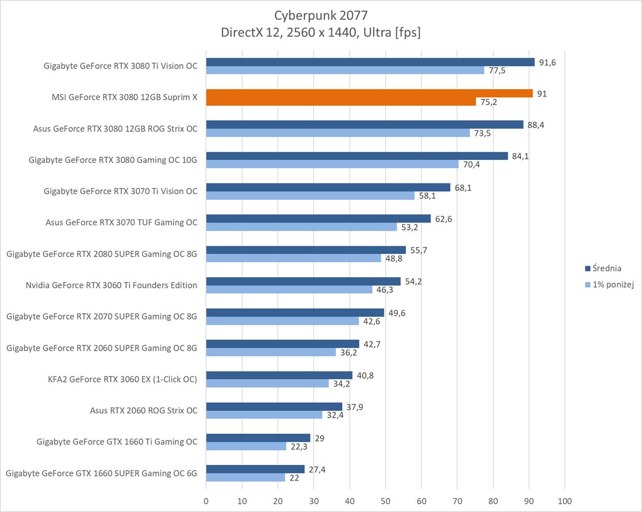 Test MSI GeForce RTX 3080 12GB Suprim X – podsumowanie
