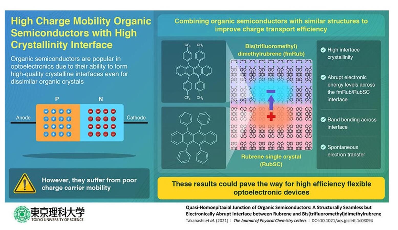Okazało się, że organiczne półprzewodniki można ulepszyć pod kątem ich skuteczności przewodzenia prądu, projektując wysokiej jakości krystaliczny interfejs. Wykorzystano do tego specjalną technikę, która umożliwiła wzrost interfejsu na powierzchni pojedynczego kryształu rubrenu. Po pomiarach naukowcy wykazali jego wysoką krystaliczność wynikającą z minimalizacji niedopasowania struktury, co właśnie wyeliminowało problem mobilności ładunków (czyt. przewodności).