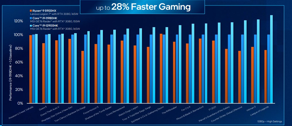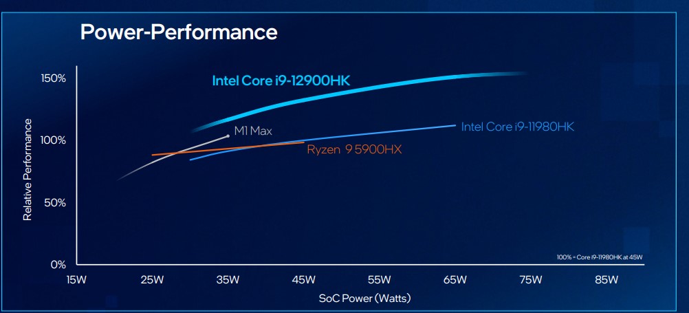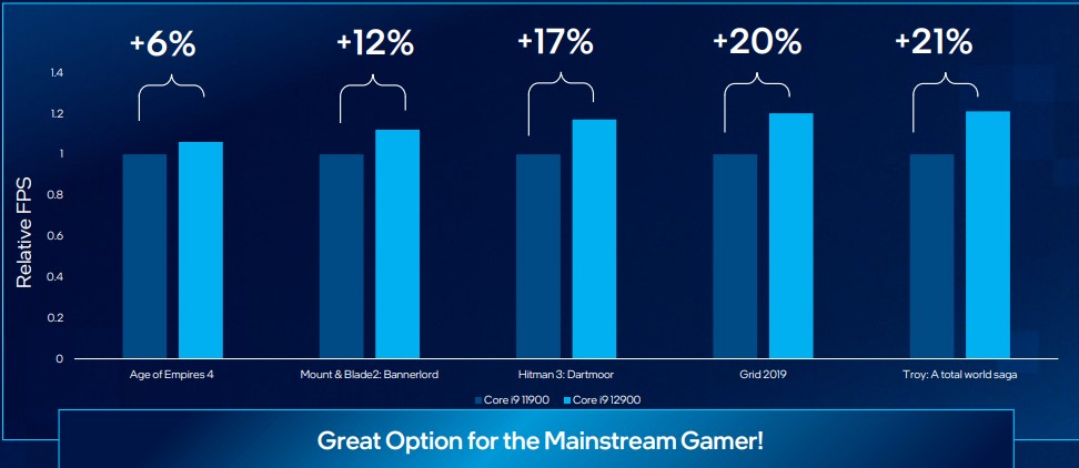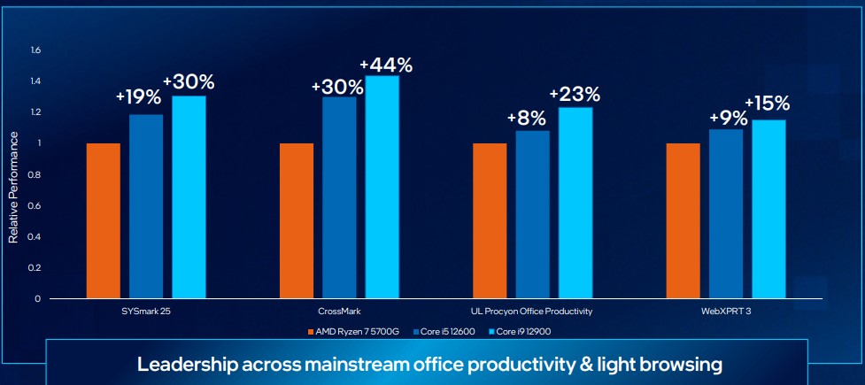Wedle wykresów Intela przewaga Core 12. generacji nad ich odpowiednikami Core 11. generacji oraz konkurencją w postaci Ryzenów, oczywiście ogromna, choć zależna od tytułu. Wydaje się pewne, że większość tych nowych układów będzie w większości bardziej energooszczędne pod obciążeniem od Ryzenów. Bez testów nie wyciągajmy jednak z tych wykresów zbyt pochopnych wniosków.