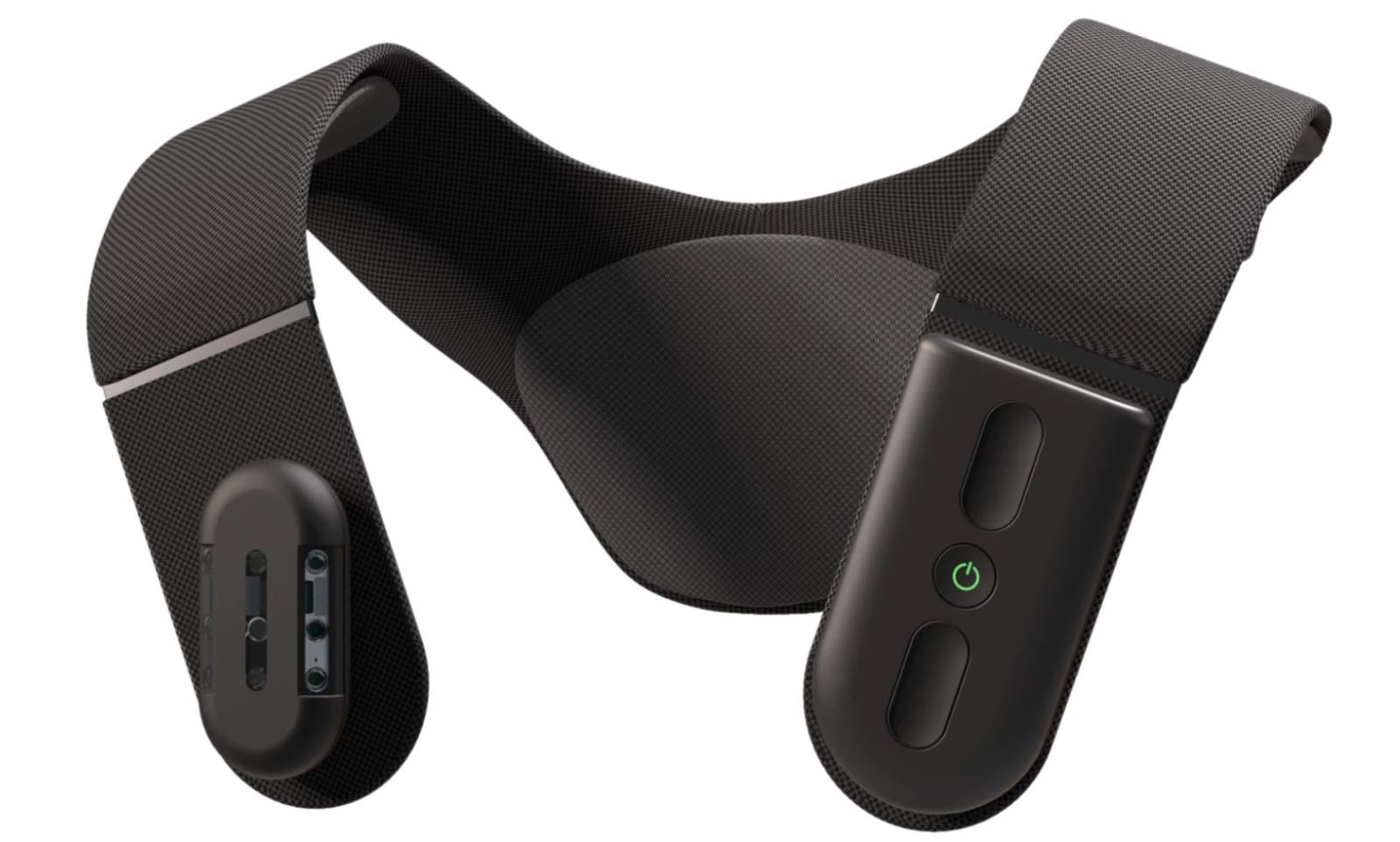 Kształt ważącego 900 gramów Biped tak naprawdę trudno określić. To uprząż zakładana na barki i okalająca użytkownika zarówno z przodu, jak i z tyłu, choć jest to podyktowane bardziej wygodą, niż funkcjonalnością. Ten gadżet nie musi mieć bowiem żadnego kontaktu z ciałem, aby działać. Taka forma pozwala jednak zarówno rozplanować całą elektronikę, jak i spotęgować łatwość użytkowania.