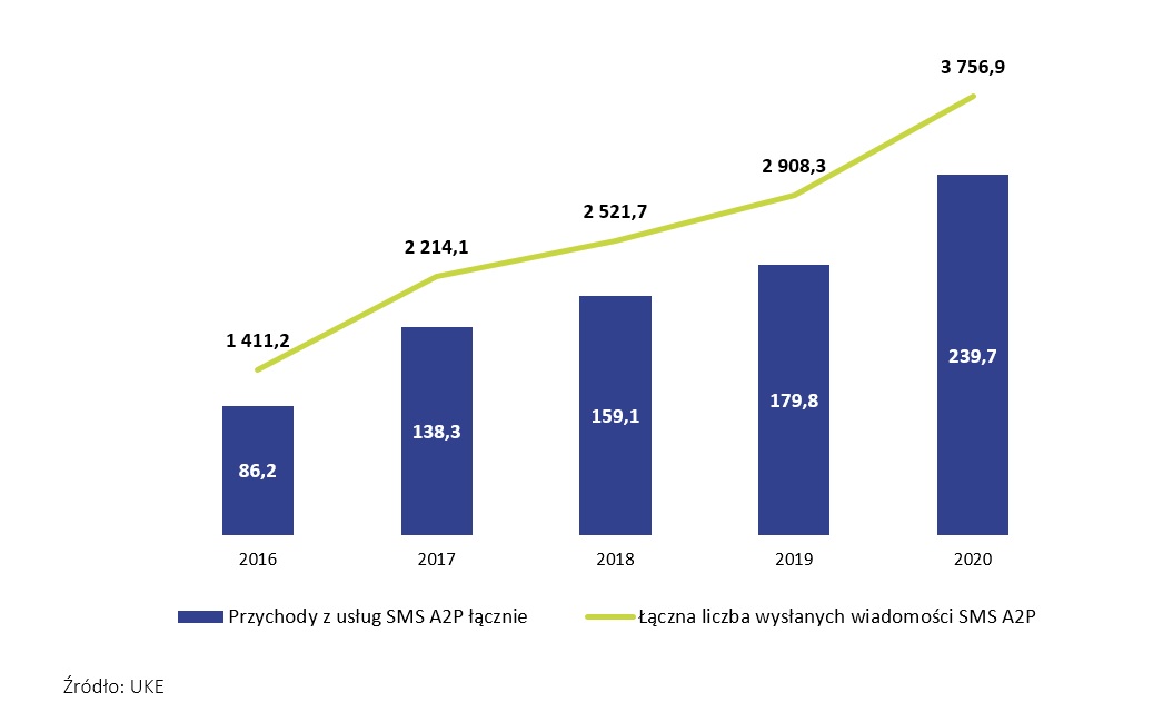 W samym 2020 roku integratorzy wysłali 3,756 mld SMS-ów, generując 239,7 mln zł przychodu. Liczby te rosą z roku na rok.