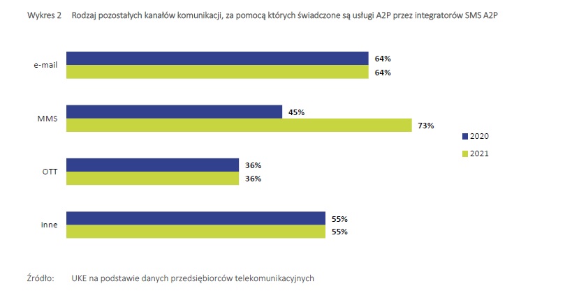 O udziale SMS-ów A2P informuje na swoim blogu Urząd Komunikacji Elektronicznej. A2P, czyli application-to-person to przede wszystkim wszelkiego rodzaju automatyczne komunikaty i powiadomienia. Generowane przez aplikacje lub systemy informatyczne. Banki, urzędy, systemy operatorów – spotykamy się z tym praktycznie codziennie.
