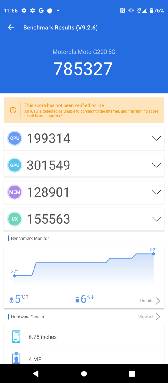 - Antutu Benchmark 9.2.6 – 785 327 pkt