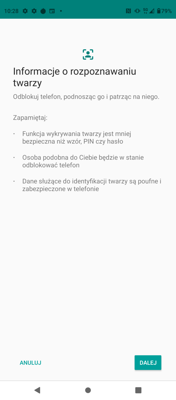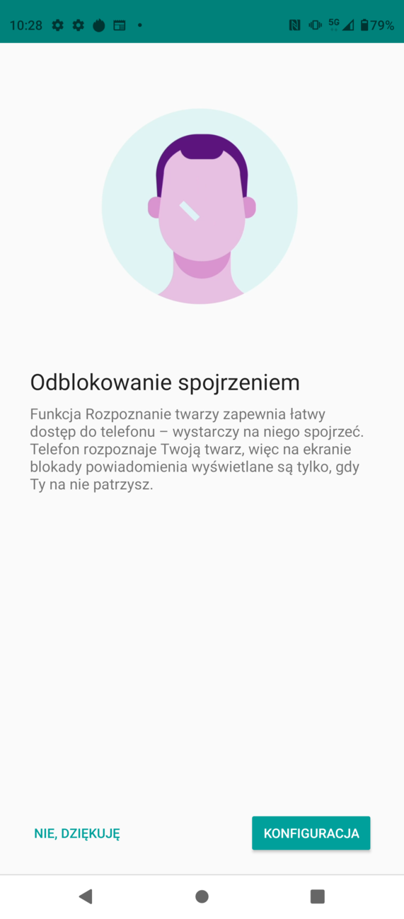 Odblokowanie za pomocą skanu twarzy również przebywa szybko i bezproblemowo, niemniej bywają problemy z samym zarejestrowaniem wzoru naszej twarzy. Musiałem do tego podchodzić kilkukrotnie i to przy dobrym świetle. Tą metodą nie odblokujemy urządzenia z zamkniętymi oczami, ani z maseczką naciągniętą na nos. Jeśli zdejmiemy ją z nosa, to już problemu nie ma.