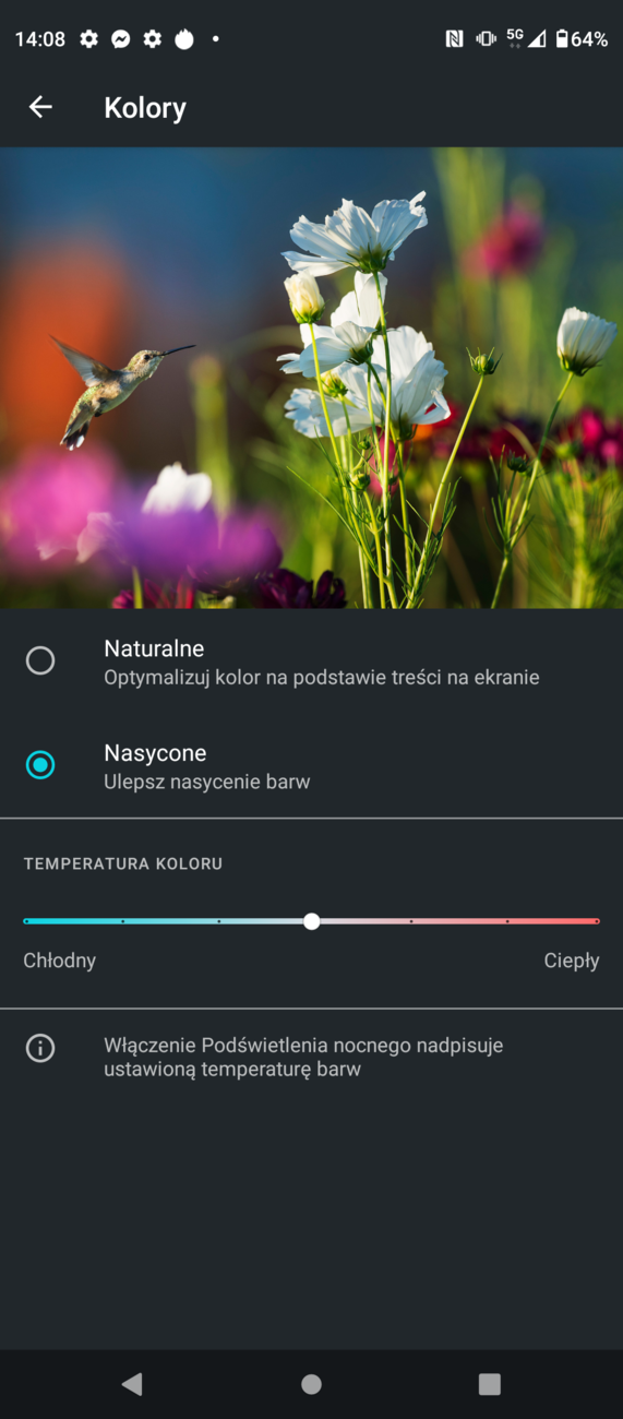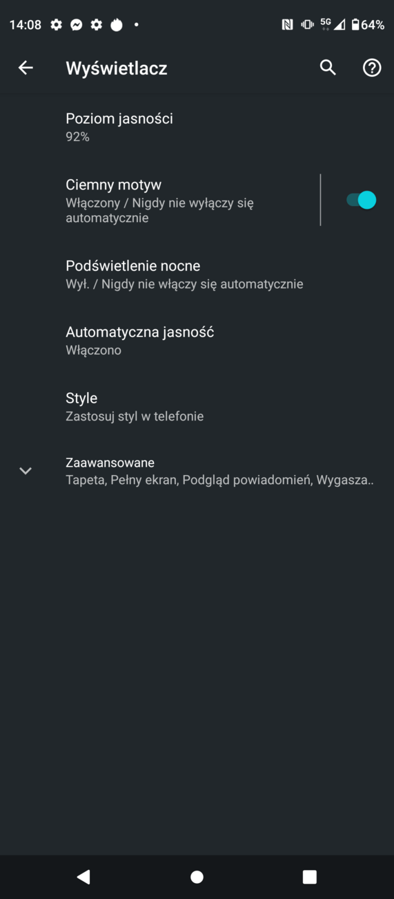 Na szczęście w ustawieniach znajdziemy m.in. tryb ciemny dla menu oraz możliwość redukcji światła niebieskiego.