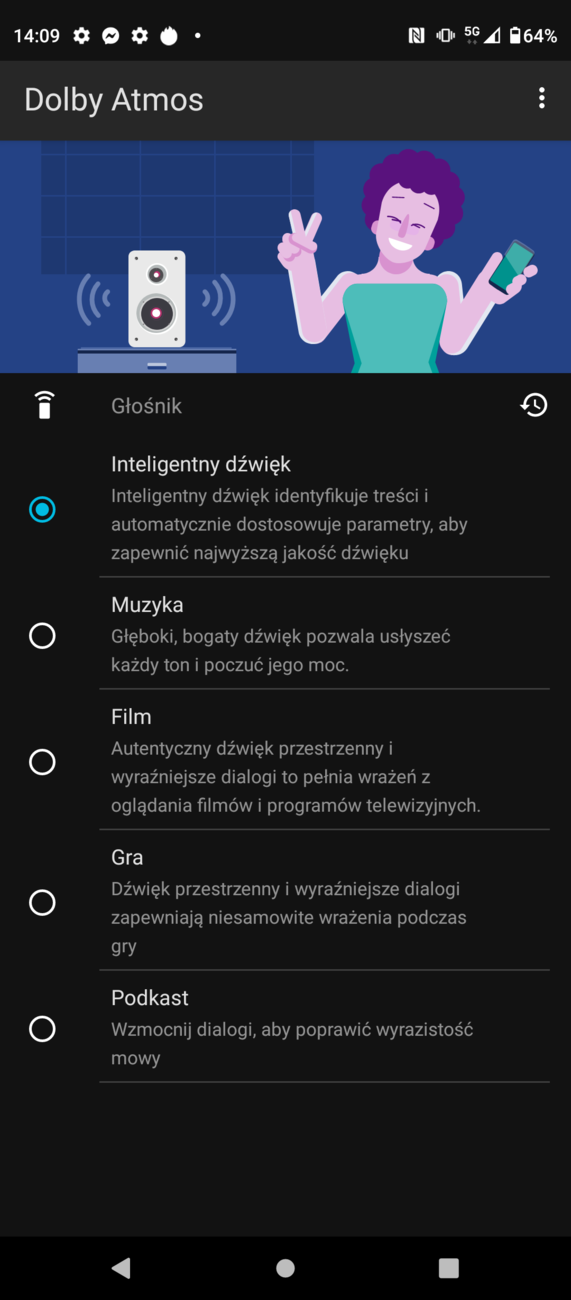 Niezależnie od tego, czy korzystamy z głośnika, czy ze słuchawek, możemy skorzystać z systemu Dolby Atmos i dostosować dźwięk do własnych preferencji.