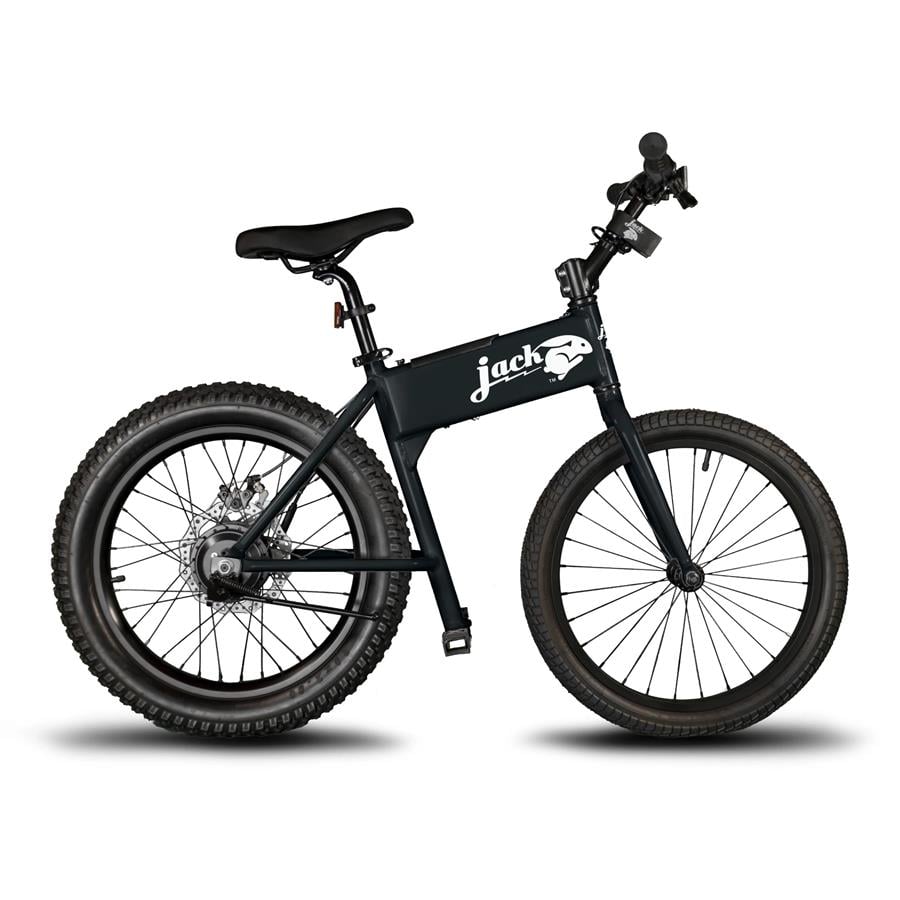 Ważący ledwie 10,89 kg rower JackRabbit jest w stanie wytrzymać obciążenia do 110 kilogramów i jeździ na 20-calowych grubych oponach do każdego terenu. Jego projekt jest maksymalnie uproszczony – nie tylko dlatego, że posiada małą i bardzo prostą ramę, ale też przez sam osprzęt. Ten w podstawowym wydaniu obejmuje tylko jeden hamulec tarczowy na tyle, prosty dzwoneczek i dźwignię przepustnic na kierownicy, która wyciska wszystko to, co najlepsze z 300-watowego silnika elektrycznego umieszczonego w piaście tylnego koła.