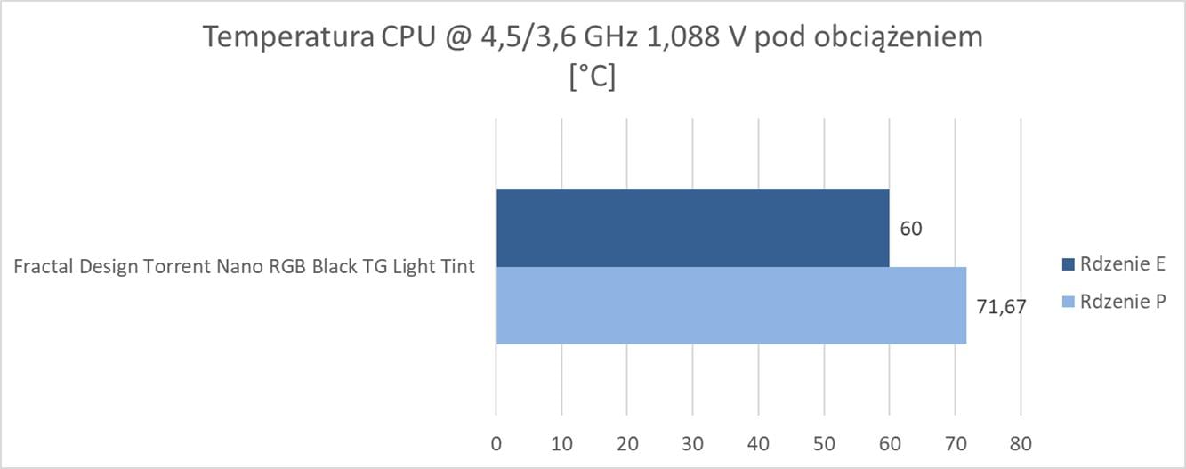 Temperatury są naprawdę niezłe. Obudowa zapewnia odpowiedni przepływ powietrza, dzięki czemu zamontowane podzespoły pracują w odpowiednich warunkach. Na pewno jednak przydałby się jeszcze tylny wentylator, który dodatkowo poprawiłby wyniki.