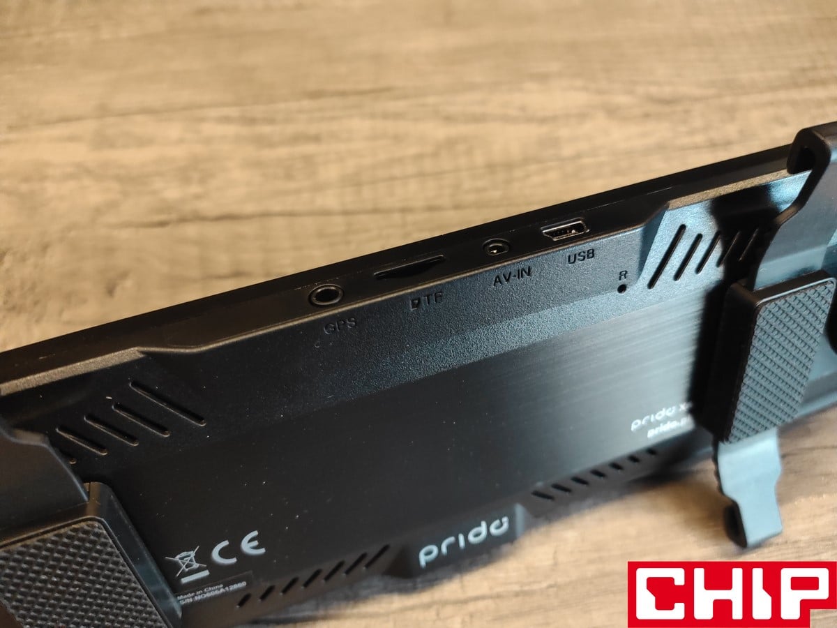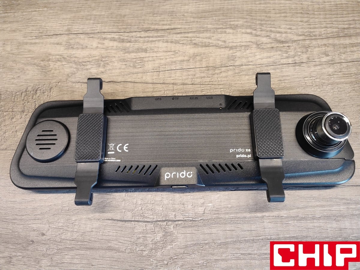 Pod kątem rozplanowanych elementów prido X6 obejmuje zestaw trzech portów na górze (zasilający miniUSB i dwa jack do kamery i modułu GPS) oraz slot na kartę pamięci do 64 GB. Na tej dolnej znalazł się pojedynczy przycisk on/off, służący też do wygaszania ekranu, podczas gdy na tylnej krawędzi obok gumowych uchwytów, znajdziemy też ukryty przycisk reset, głośnik i mikrofon.