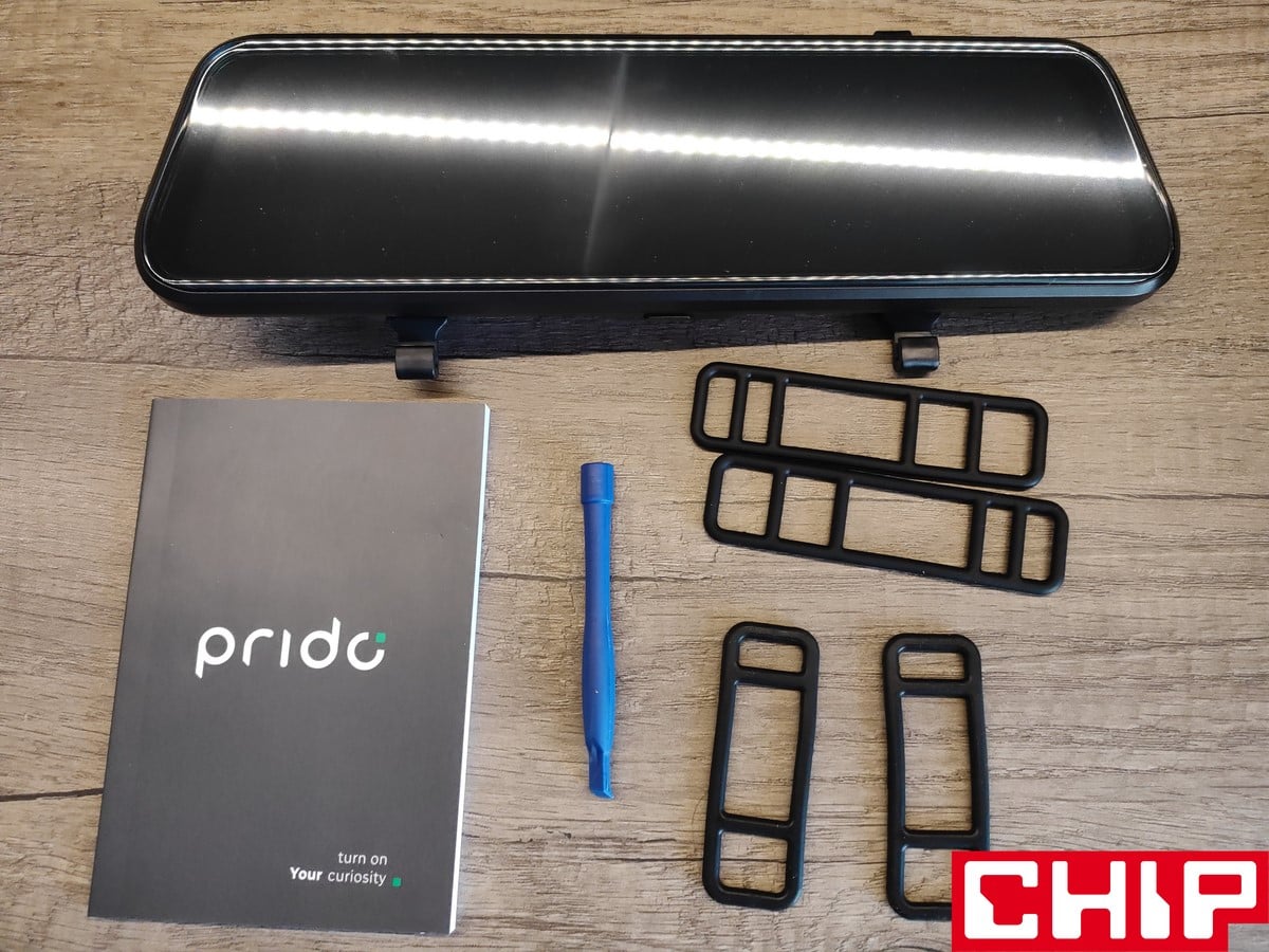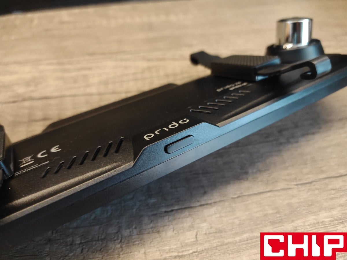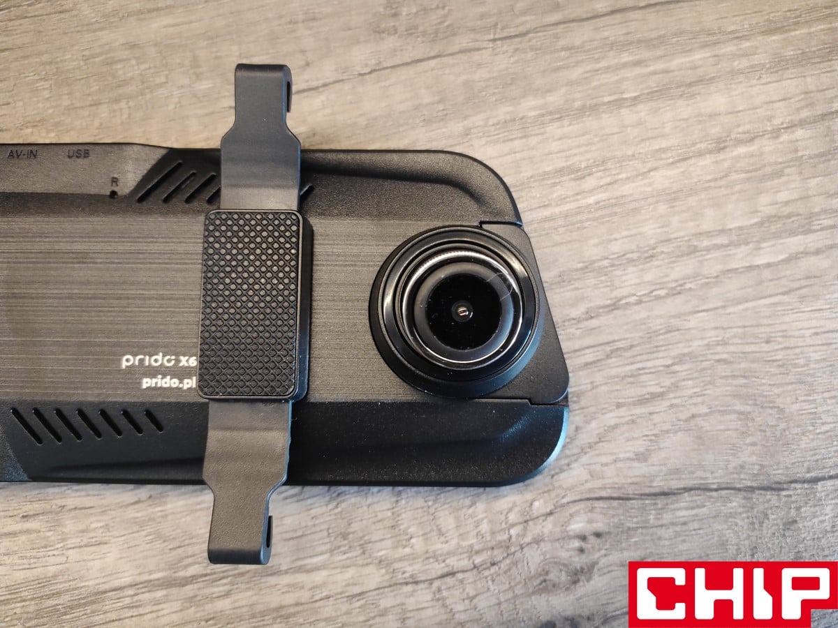 prido X6 ze względu na swoją formę ewidentnie trzeba nazwać prostym wideorejestratorem z zewnątrz. Przyjmuje rozmiary nieco grubszego, plastikowego wewnętrznego lusterka, o którym można zapomnieć tuż po montażu, choć zdecydowanie nie warto ze względu na jego możliwości. W ujęciu fizycznym buduje go głównie tworzywo sztuczne, które na tyle stara się wyglądać przyjemnie dla oka za sprawą wyżłobień, ale pełni przede wszystkim funkcje utylitarne, wspomagając chłodzenie wewnętrznych układów za sprawą otworów wentylacyjnych.