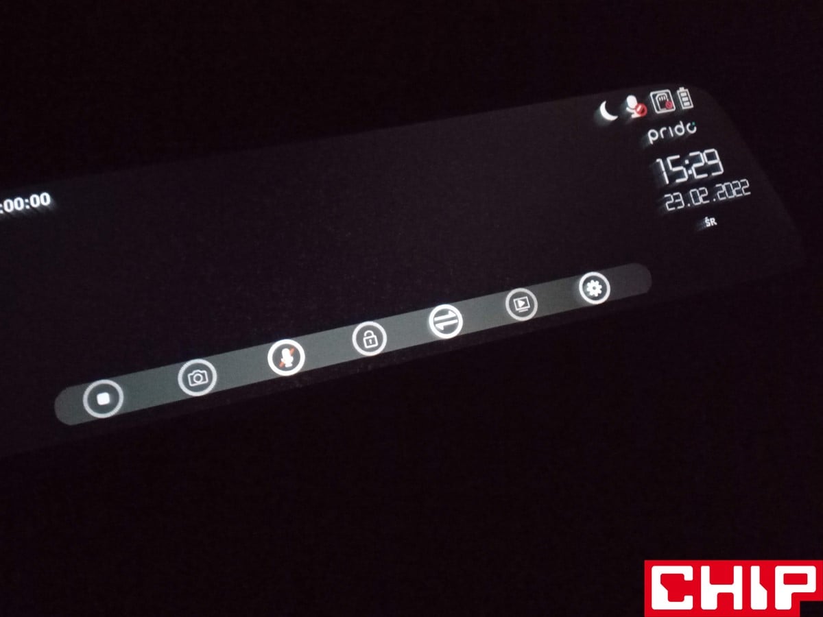 Wyświetlacz prido X6 spodoba się jednak każdemu, bo jeśli już zakończycie cały proces konfiguracji w nieco topornym menu, będziecie skazani wyłącznie na przyjemny dla oka interfejs. Aktywuje się go poprzez dotknięcie ekranu, aby wyświetlić zarówno obecnie aktywowane opcje (np. dezaktywowany mikrofon), jak i dolną belkę z następującymi opcjami: