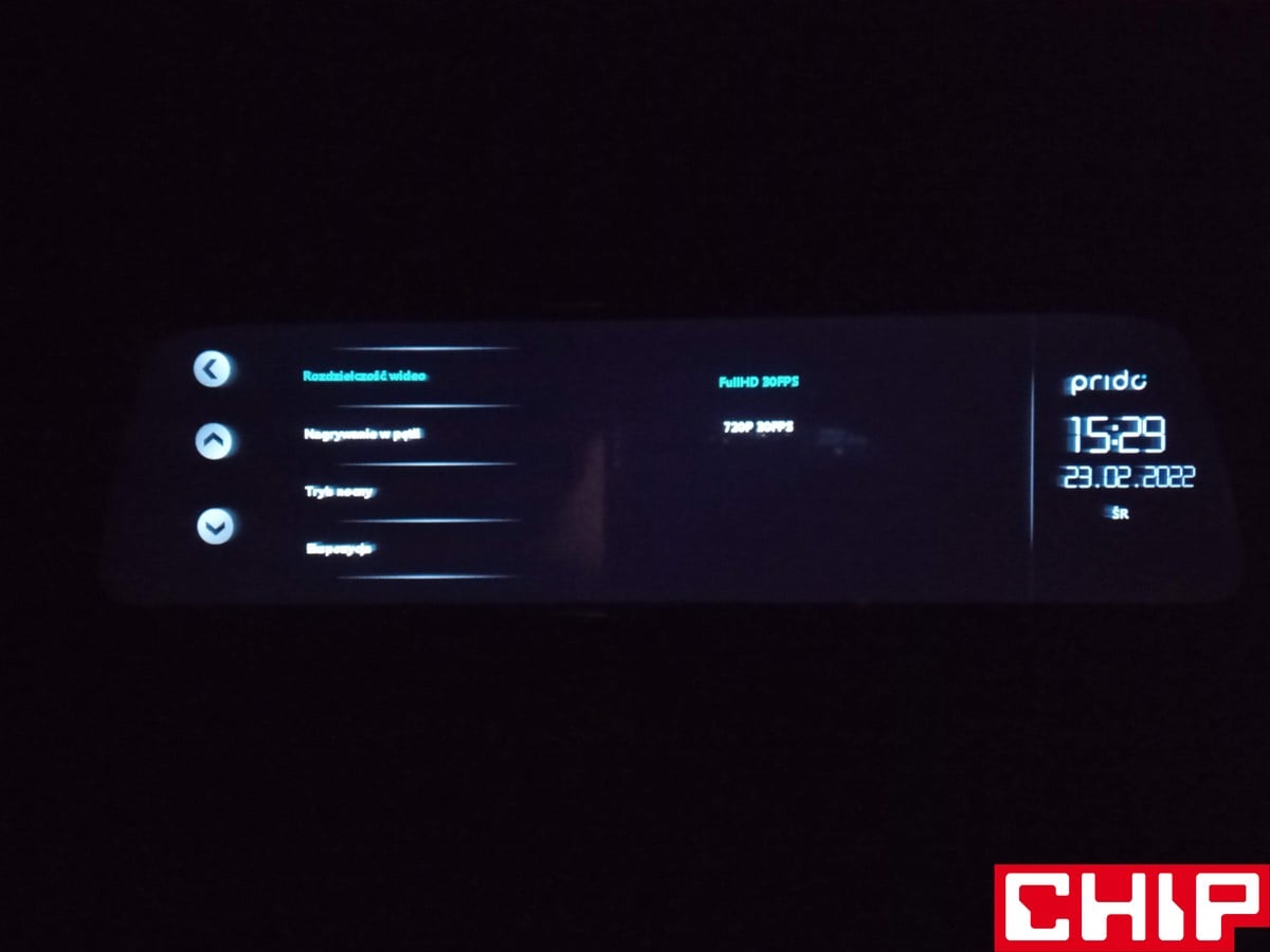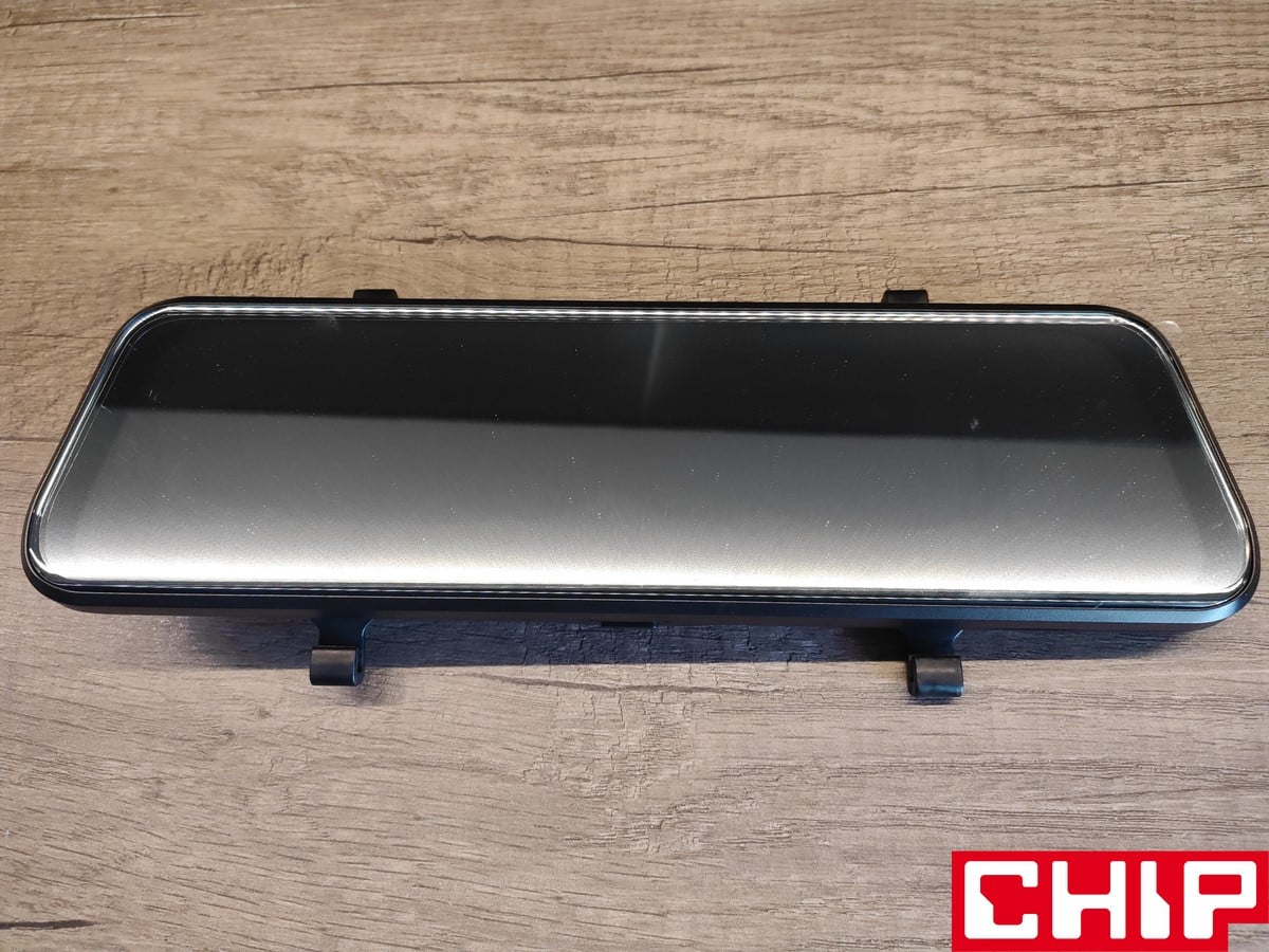 Największe wrażenie w tym modelu robi wyświetlacz, który zajmuje znakomitą większość powierzchni frontowego lusterka. Nie znamy jego jakości, czy rodzaju (najpewniej to matryca TN), ale z całą pewnością wiemy, że pogląd na 9,66 calach robi wrażenie… nawet jeśli w przypadku nagrań jest on zauważalnie rozciągnięty. Jego jasność i jakość można określić mianem “przyzwoitej”, ale warto zwrócić uwagę, że jego biała czcionka znacząco traci na wyraźności, kiedy patrzymy na nią pod kątem.