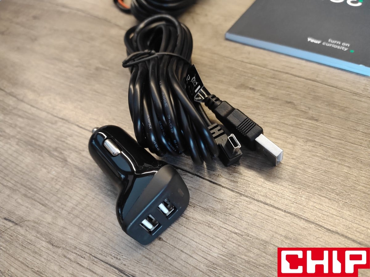 Producent zadbał też o najważniejsze podstawowe funkcje, które obejmują automatyczny start, zapisywanie nagrań w pętli 1/3/5 min i zabezpieczanie ich, wbudowany czujnik wstrząsów, tryb parkingowy i związany z nim 500 mAh akumulator do dbania o nasz samochód na parkingu. Wisienką na torcie jest wspomniana kamerka tylna i moduł GPS, zapewniający nam informacje co do prędkości i lokalizacji.