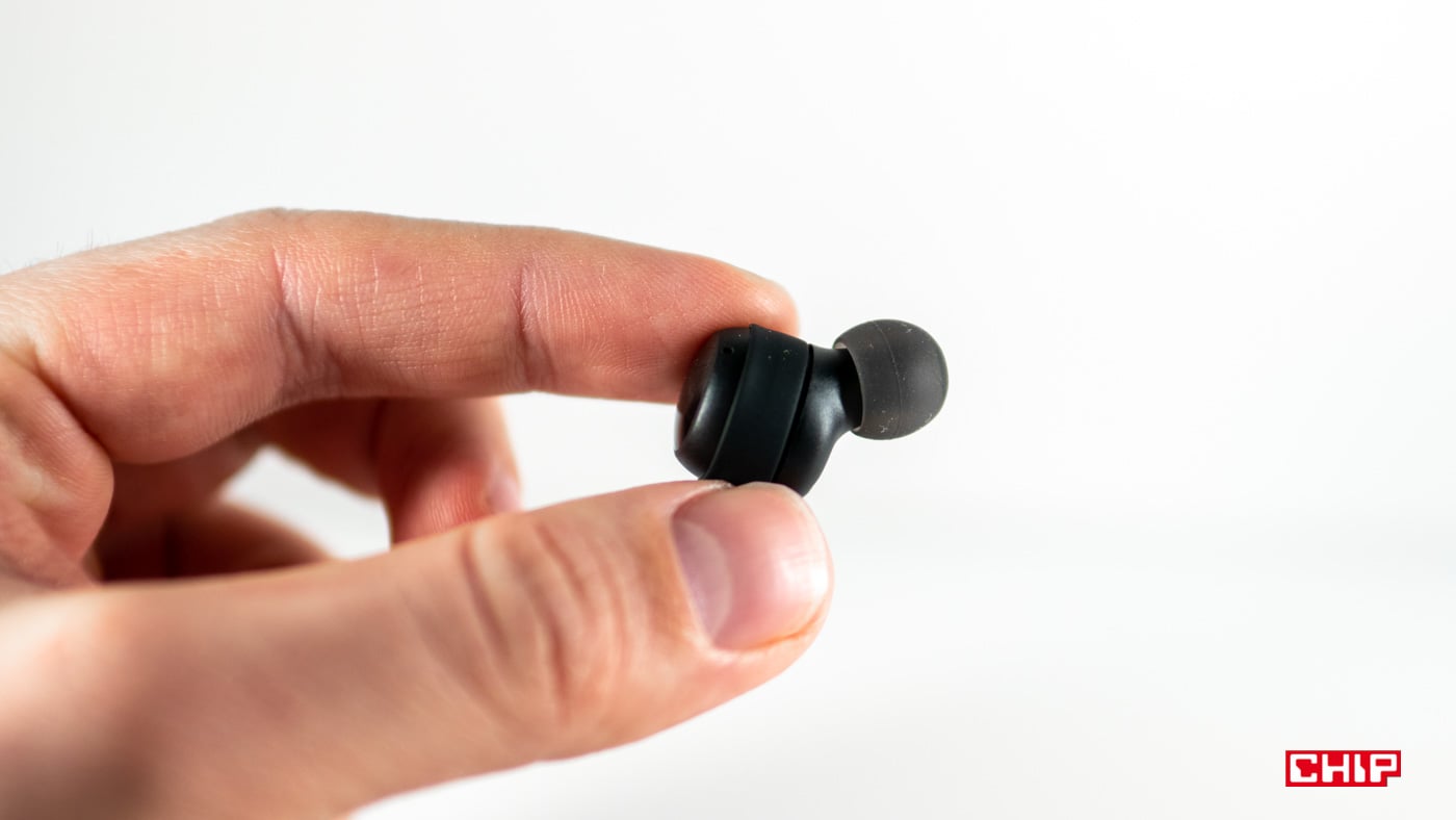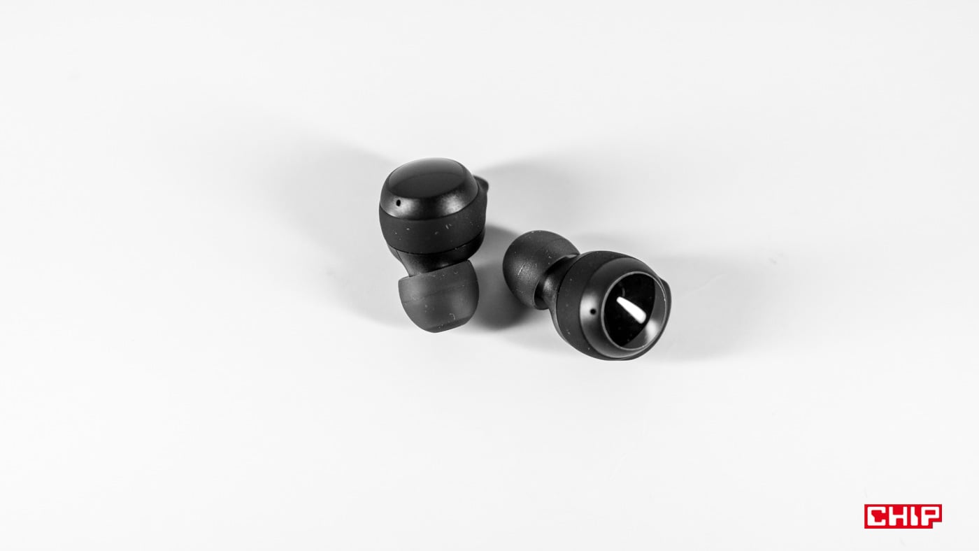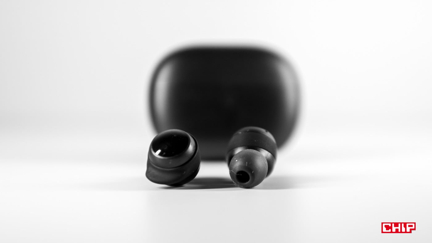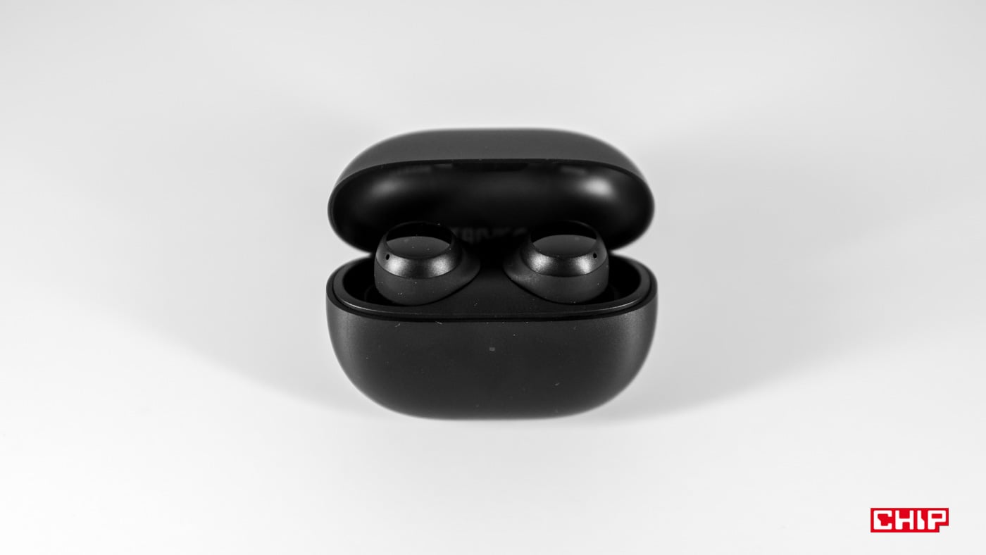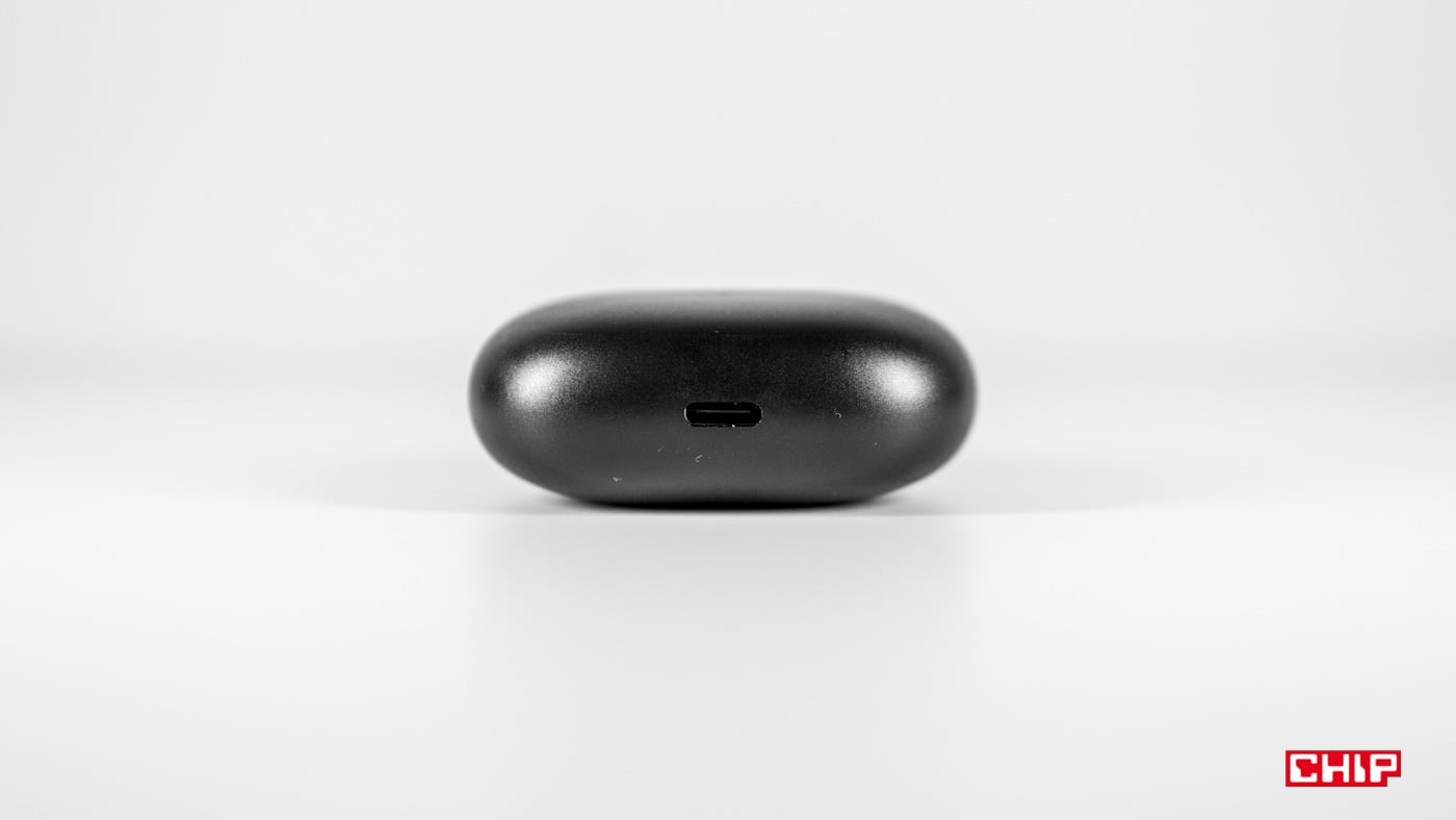 Z zewnątrz etui posiada prostą diodę funkcyjną (świeci podczas ładowania i gaśnie po nim) i port USB-C, a wewnątrz jedynie styki ładujące z mocno namagnesowanymi lukami na słuchawki. Te z kolei do aż tak standardowych nie należą, bo choć zachowują tradycyjną formę, posiadają panele dotykowe z wierzchu, są zadziwiająco smukłe i świetnie trzymają się w uchu za sprawą zarówno gumek, jak i dodatkowych wsporników. Co ważne, ze sprzętami nawiązują połączenie poprzez Bluetooth 5.2, a ich obudowa jest oceniana na poziomie IP54.