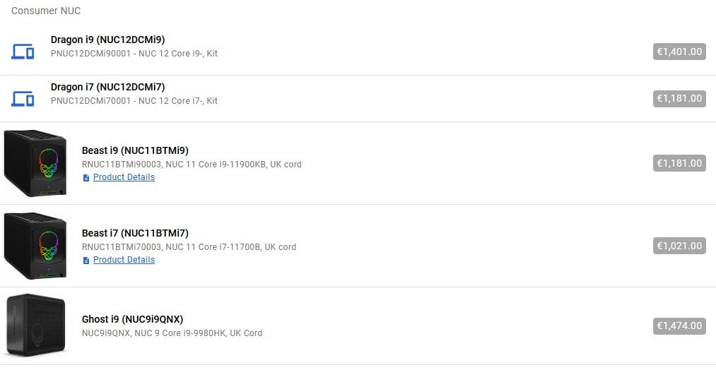 Dzięki serwisowi Videocardz możemy przedpremierowo zapoznać się z najnowszym NUC Intela, którego firma zaprezentowała na targach CES 2022, nie wchodząc wtedy jednak w szczegóły. Na ten moment nie wiemy, kiedy NUC 12 Extreme zadebiutuje, ale pojawił się już w sklepach (via @momomo_us), wskazując na cenę 1181 euro/1514 dolarów za wersje z procesorem Core i7 oraz 1401 euro/1714 dolarów za Core i9.