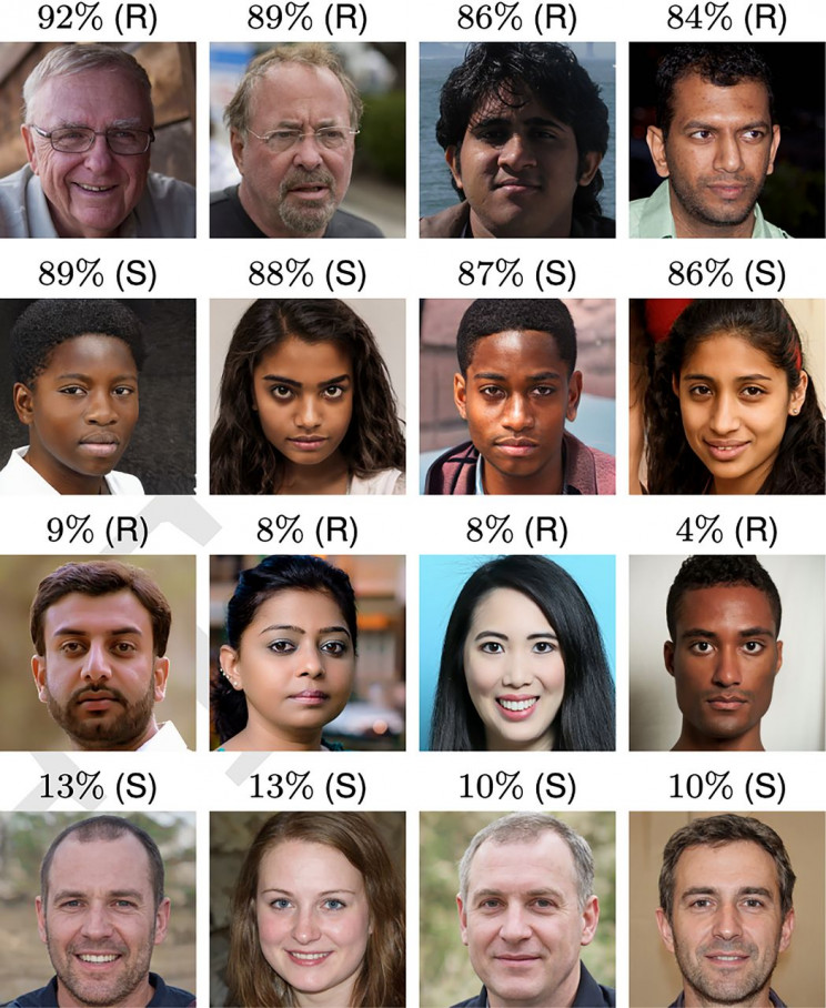 Pierwszy etap badania zakładał ocenę 128 twarzy pod kątem ich faktycznego istnienia. Uczestnicy wydali poprawny werdykt w zaledwie 48,2% przypadków. Największe trudności mieli oni z oceną białych twarzy, co może wynikać z faktu, że dane, na których była szkolona sztuczna inteligencja zawierały najwięcej zdjęć przedstawicieli tej rasy. A im więcej danych, tym skuteczniejszy trening i bardziej realistyczne efekty.