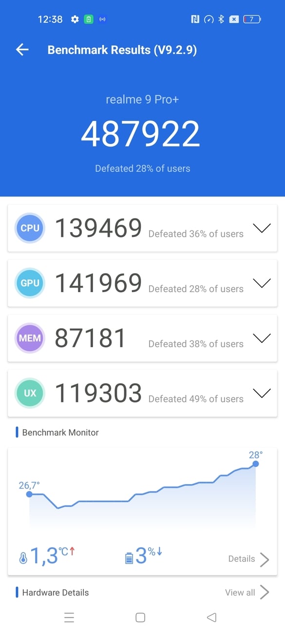 - Antutu Benchmark 9.2.9 – 487 922 pkt