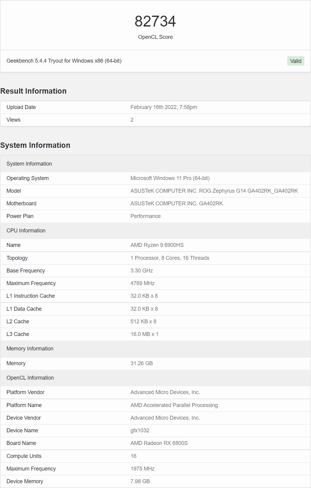 Odpowiedź na to pytanie zapewnia nam najnowszy wyciek z bazy danych Geekbench 5 OpenCL. W nim mniej energożerna karta graficzna zdobyła 82734 punktów, a jeśli weźmiemy średnią uzyskaną przez RX 6800M, dostaniemy około 93370 punktów, co przekłada się na różnicę ~11% w ogólnej wydajności. Nie jest to oczywiście zaskoczeniem, bo patrząc na specyfikację można było się tego spodziewać (niższa wydajność za cenę niższego poboru energii), ale przez to, jak AMD skomplikowało ofertę, warto znać szczegóły wydajności wariantów -S i -M.