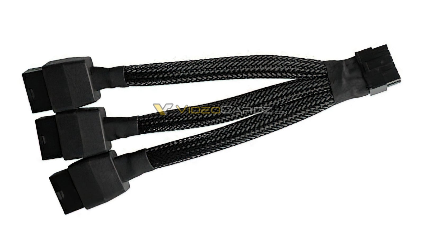 Dziś świat obiegła informacja, że GeForce RTX 3090 Ti rzeczywiście będzie korzystał z tego nowego standardu złączy zasilania, ale NVIDIA nie zmusi nas do wymiany samych zasilaczy. Firma dokona tego poprzez dołączanie do zestawu specjalnego adaptera, wymagającego trzech 8-pinowych przewodów zasilających do dostarczania 450 watów mocy tej karcie graficznej. Będzie to więc adapter 3 do 1, którego zwieńczy standard 12VHPWR, czyli 12+4-pinowe złącze, uniemożliwiający karcie graficznej komunikowanie się z zasilaczem co do aktualnego zapotrzebowania na moc (za to odpowiadają wspomniane 4 piny).