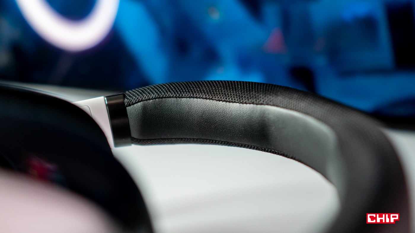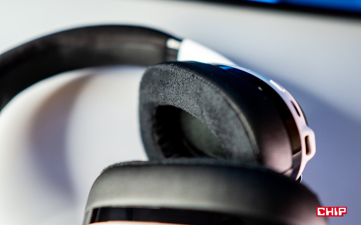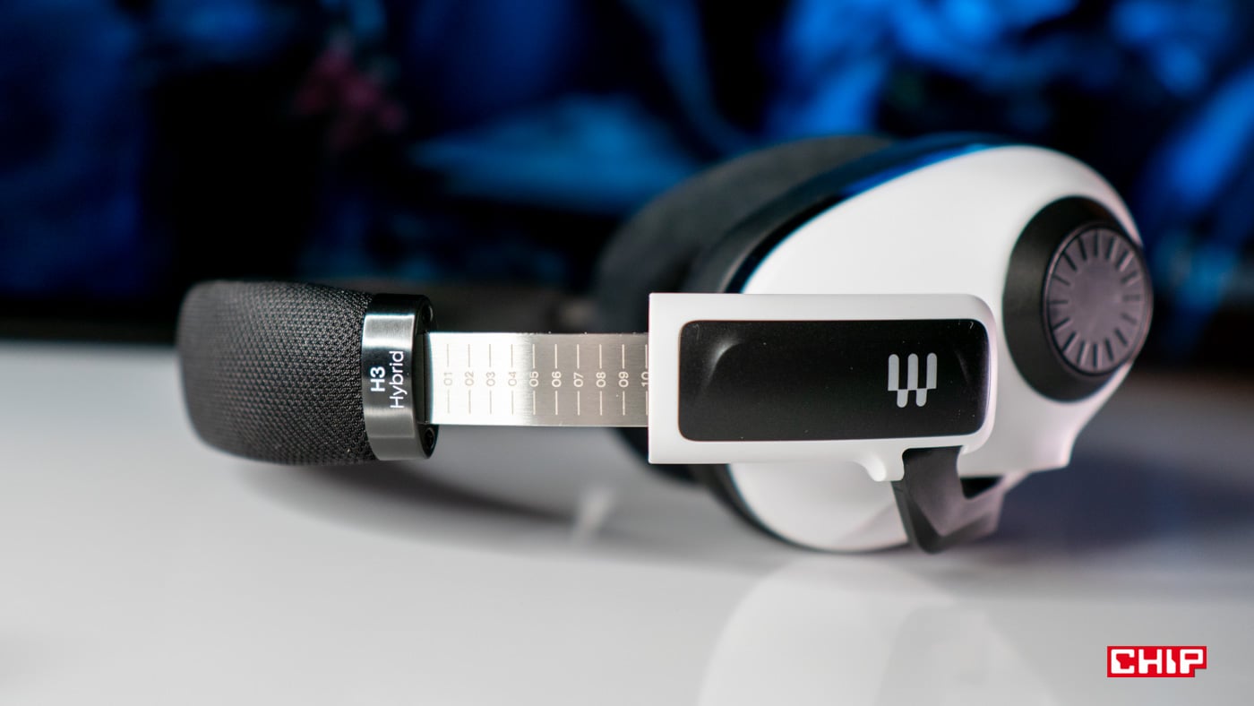 Epos H3 Hybrid jest też lepiej wykonany, o czym świadczą aluminiowe wstawki na obudowie, a dokładniej mówiąc, między widełkami, a pałąkiem. Gdyby tego było mało, skórzane obicie samego pałąka zostało zastąpione znacznie lepiej prezentującym się materiałowym w formie mikrosiatki. Dodatkowo pokrętło głośności w Epos H3 Hybrid jest zaprzęgnięte do systemowego poziomu głośności.