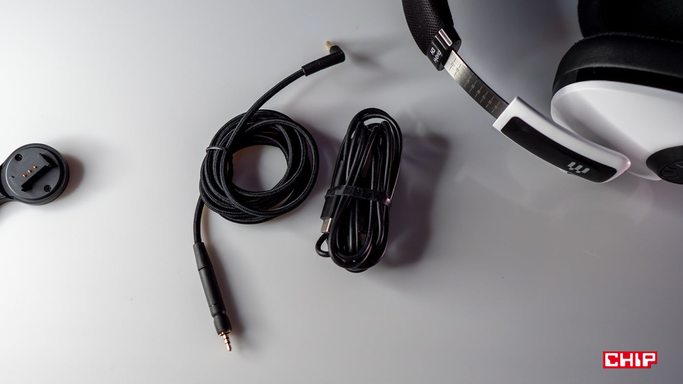 Chociaż oba zestawy słuchawkowe wydają się identyczne na pierwszy rzut oka, to w praktyce różnią się w wersji białej kilkoma fragmentami kolorystycznymi (w Epos H3 Hybrid dominuje czerń). Dodatkowo bardziej zaawansowany model posiada również odpinany mikrofon (stąd dodatek zaślepki w zestawie) oraz cienki 2-metrowy przewód USB-C do USB-A w gumowej osłonce w myśl połączenia przewodowego, które jest też możliwe za pośrednictwem tradycyjnego jacka 3,5 mm w przypadku urządzeń mobilnych, czy konsol.