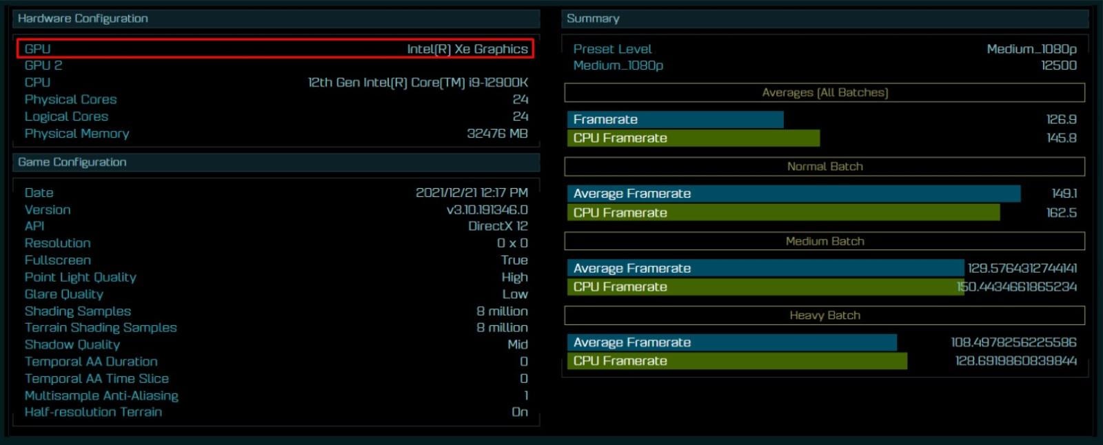 Chociaż pozbawiony konkretnych informacji, do sieci wpadł pierwszy test procesora graficznego DG2 w grze. Problem w tym, że zapisana w bazie danych Ashes of The Singularity karta graficzna jest całkowicie nieznana pod kątem specyfikacji. Dodatkowo przez brak oficjalnego wsparcia benchmark nie ujawnia szczegółów nazwy, czy specyfikacji, ale wskazuje, że test dotyczył ustawień Medium 1080p.