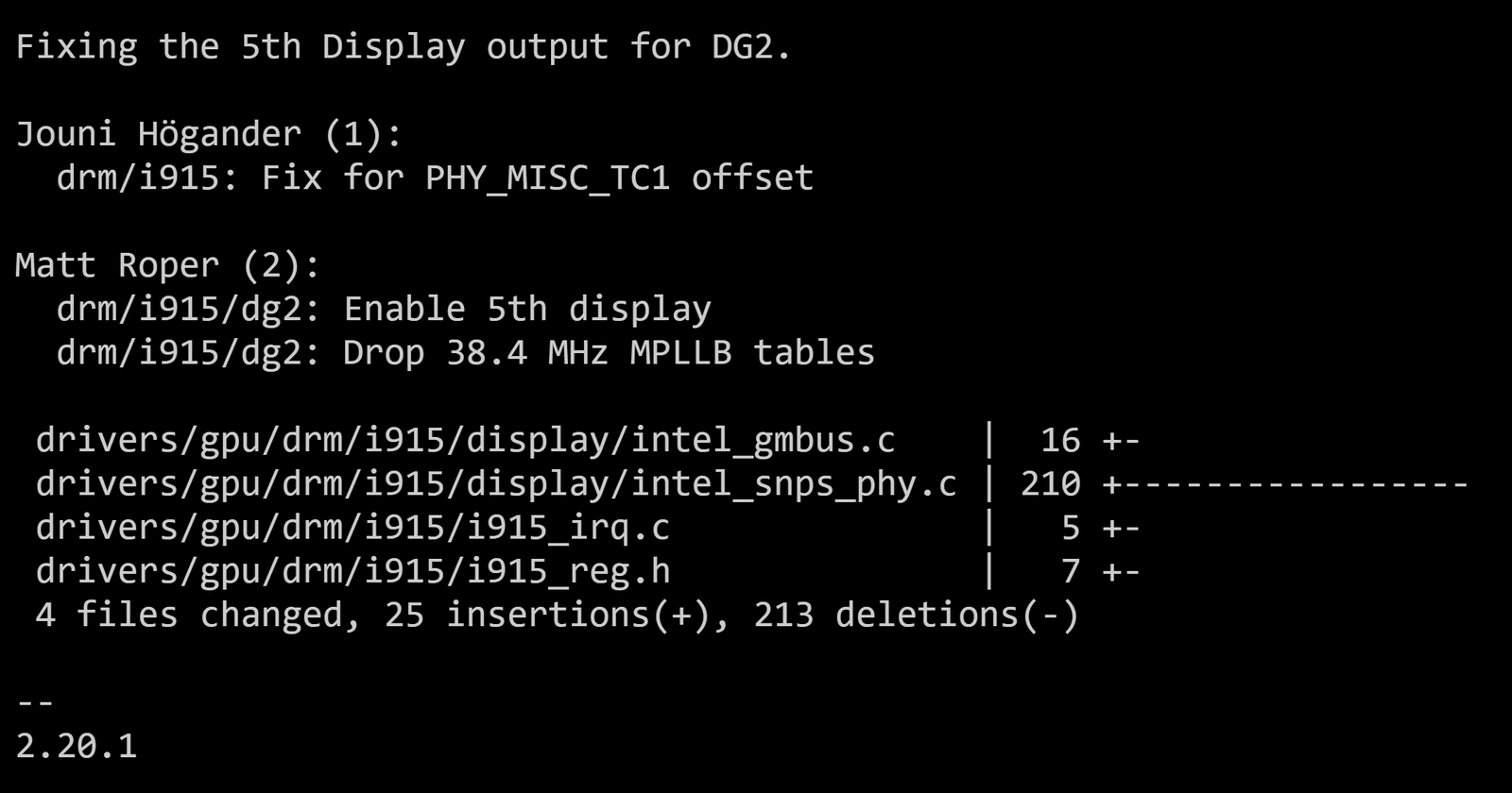 Jak to zwykle bywa z informacjami z tego typu źródeł, patch do jądra Linux i915 nie wyjaśnia w jaki sposób GPU DG2 będą w rzeczywistości 5 wyświetlaczy. Jest to o tyle zastanawiające, że żadne ze zdjęć próbek inżynieryjnych kart stacjonarnych nie posiada nawet śladu wyjścia dla piątego wyświetlacza. Brak USB-C, który mógłby pełnić funkcję DP HUB, podkreśla brak tych możliwości z nawiązką, jak zresztą obecny rynek modeli AMD i NVIDIA, które pomimo okazjonalnej obecności pięciu wyjść wideo i tak wspierają maksymalnie 4 wyświetlacze jednocześnie.