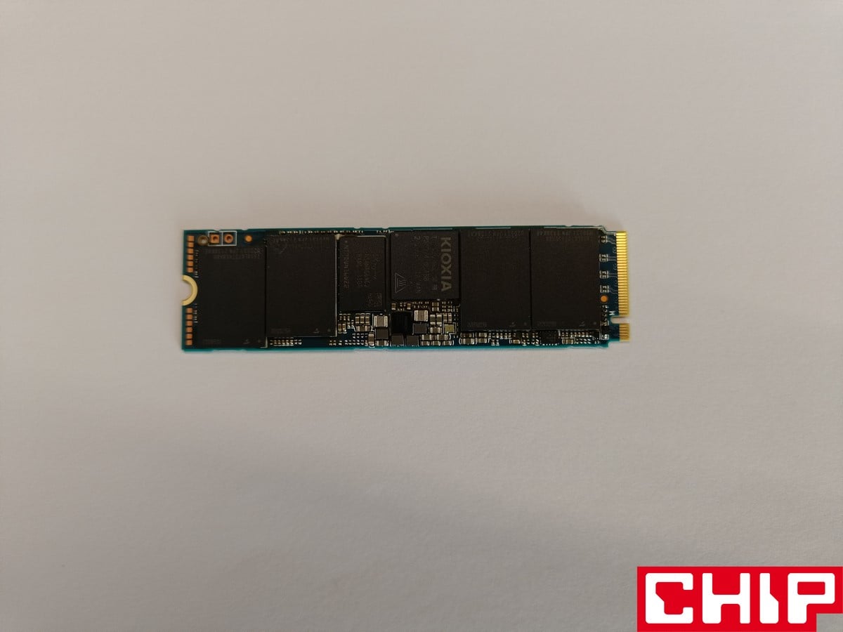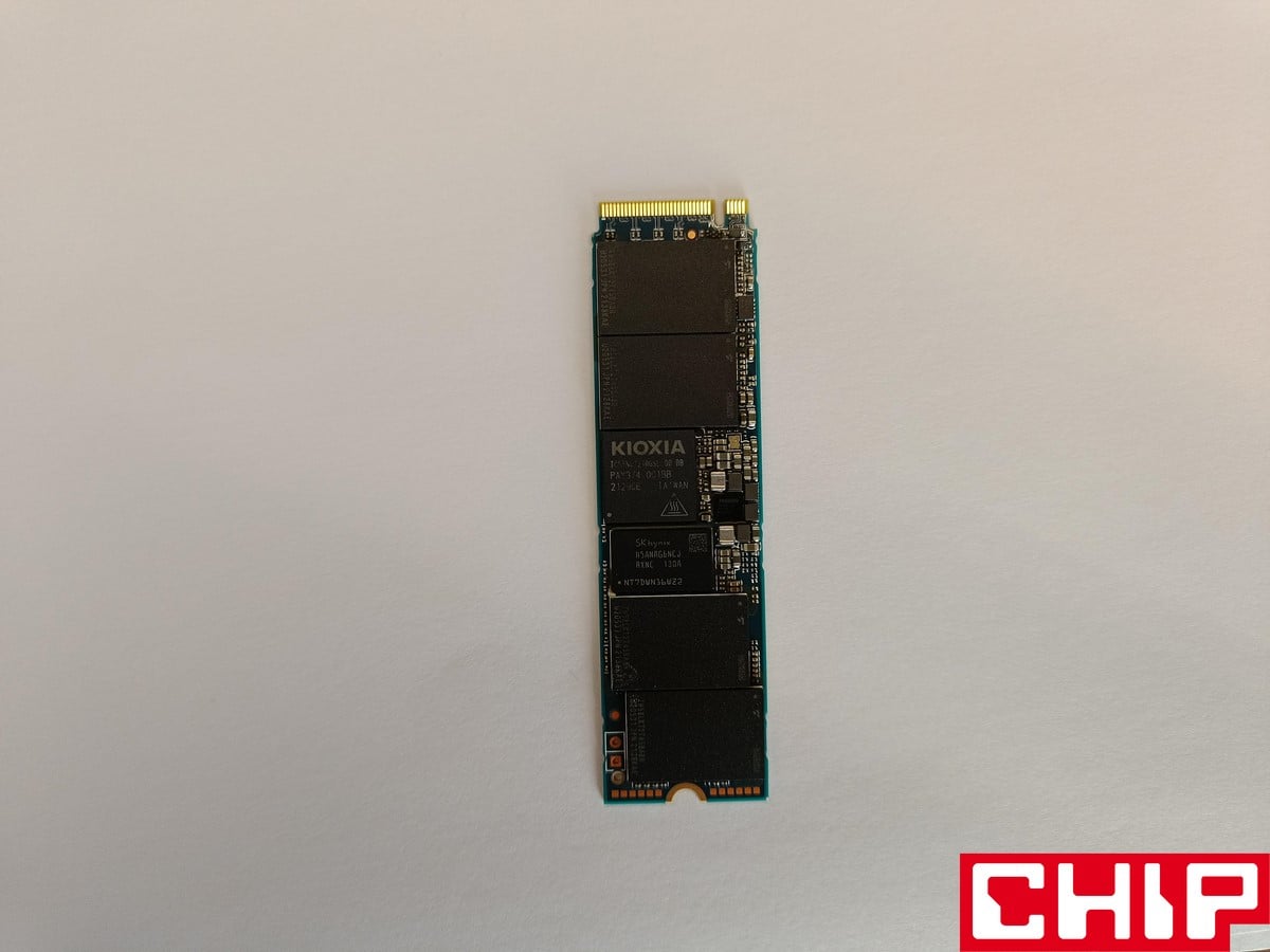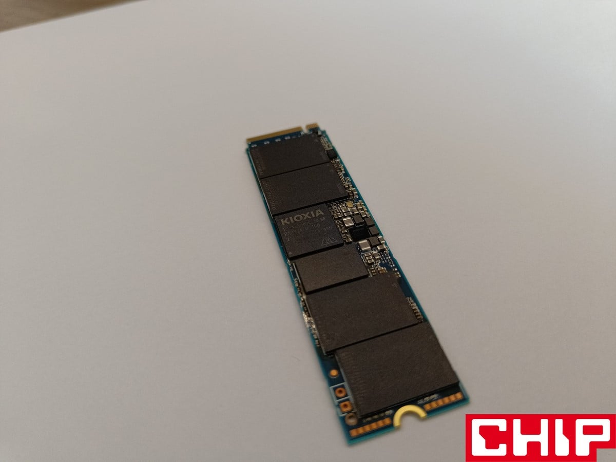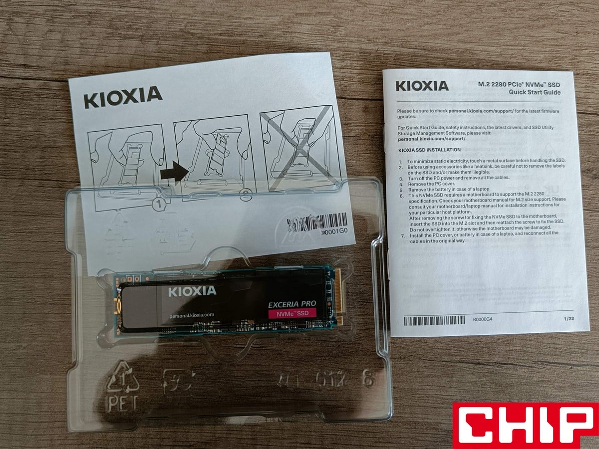Z wyglądu KIOXIA Exceria Pro 2 TB nie wyróżnia się niczym – ot tradycyjny dysk M.2 z naklejką na układach, którą można łatwo odkleić. Jednak od samego laminatu “bije” pewnego rodzaju wysoka jakość, bo poszczególny rozstaw nawet małych tranzystorów wydaje się dokładnie przemyślany. Co najważniejsze, ten dysk nawet w 2 TB wersji pojemności posiada układy wyłącznie z jednej strony, co oszczędza miejsce i upraszcza kwestię chłodzenia. To jest konieczne zważywszy na standard PCIe 4.0, dlatego sam test był wykonywany z wykorzystaniem pasywnego chłodzenia dołączonego do płyty głównej, który zapewniał odpowiednio wysoką skuteczność chłodzenia.
