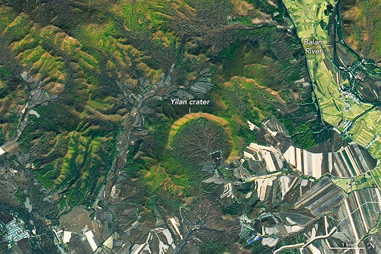 Krater uderzeniowy Yilan ma około 1850 metrów średnicy