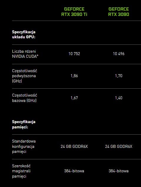 Oficjalnie GeForce RTX 3090 Ti kosztuje 1999$ (8375 zł) w wersji Founder’s Edition, czyli o 500$ więcej względem dotychczasowego flagowca. Na oficjalnej stronie producenta w wersji polskiej nie znajdziemy informacji co do wyceny, ale wedle producentów niereferencyjnych modeli, karty mają kosztować “tylko” 10999 złotych, a przynajmniej taką informację dostaliśmy na temat modelu Phantom GS oraz GameRock OC. Szkoda tylko, że jest to najpewniej cena detaliczna, którą dodatkowo podbije obecna sytuacja na rynku i zapewne również podatek VAT (23%), podnosząc ceny w Polsce do około 13-15 tysięcy złotych.