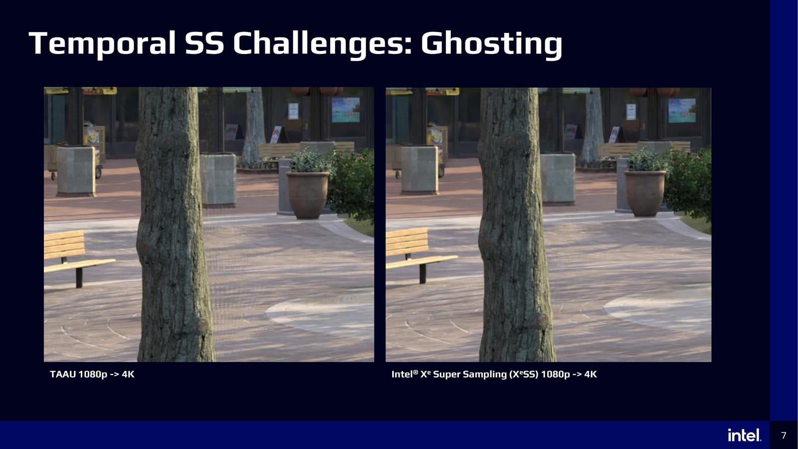Podczas targów GDC 2022 wiele firm miało do pokazania kilka wartych naszej uwagi technologii z myślą o grach. Obok DirectStorage zdecydowanie warto rzucić okiem na technologię Intel Xe Super Sampling, z którą wiąże się sporo nadziei. Dlaczego? Bo Intel nie tylko chce zapewnić wsparcie wszystkim kartom graficznym (zarówno starszym, jak i konkurencyjnym modelom), ale też iGPU, a na dodatek wyeliminować lub zminimalizować znane problemy z tymi technikami, czyli zjawisko ghostingu oraz rozmycia obrazu.