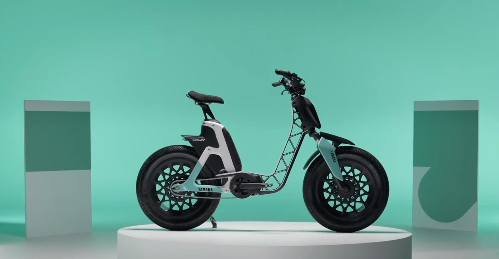Yamaha B01 przykuwa wzrok mariażem ewidentnie skuterowych elementów (koła, kierownica i przednia sekcja wskazują na to bezpośrednio) z rowerowymi, co przejawia się zarówno w pedałach, jak i ramy typu step-through ze szkieletowym rdzeniem. Widać, że akumulator znajduje się tuż pod siodełkiem i choć nie znamy zasięgu, to ponoć B01 w wersji produkcyjnej, która zadebiutuje w 2023 roku, będzie oferowało napę do 45 km/h.