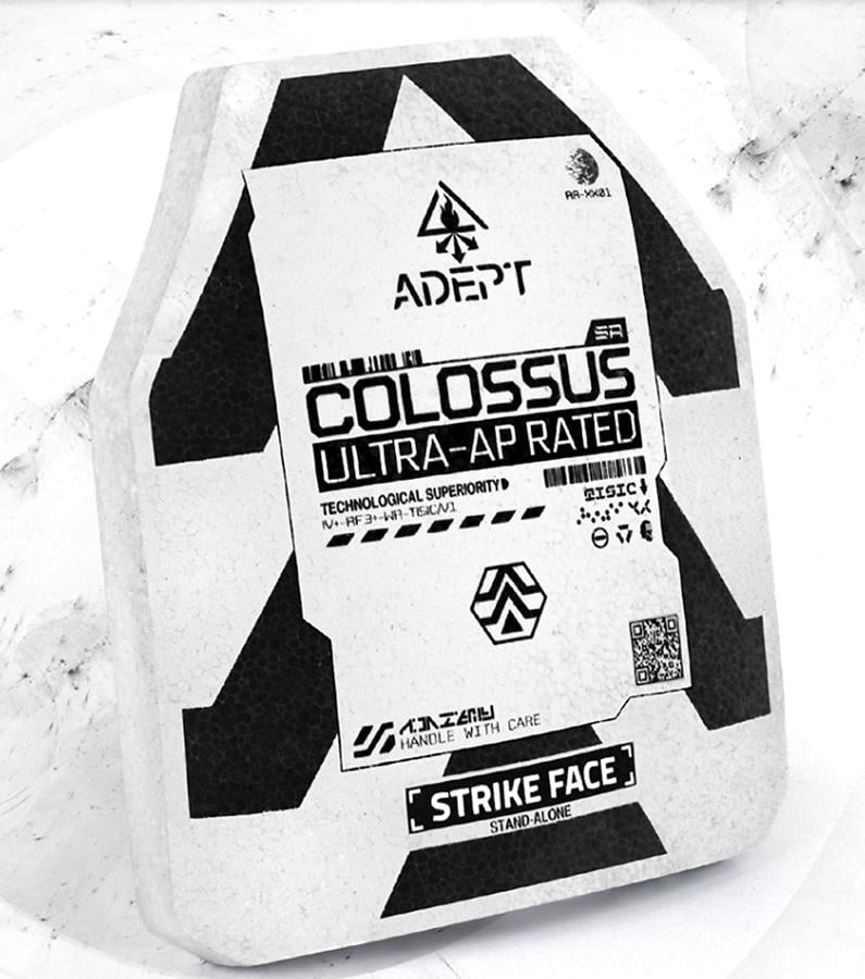 Adept Armor w swoim wkładzie balistycznym Colossus zastosowało połączenie, które spełnia europejską klasę VPAM 12 i normę NIJ IV. Ta druga wymaga od wkładu zapewniania ochrony przed amunicją 7,62 x 63 mm ze stalowym rdzeniem, ale Colossus znacznie to poprawia. Oferuje bowiem ochronę przed amunicją przeciwpancerną 7,62 x 51 mm Swiss P AP z wolframowym rdzeniem, która uderza z prędkością 810 m/s. Spełnia więc standard VPAM 12, VPAM 11 oraz RF3, radząc sobie naturalnie z mniejszymi kalibrami pokroju penetrującego pocisku 5,45 x 39 mm.