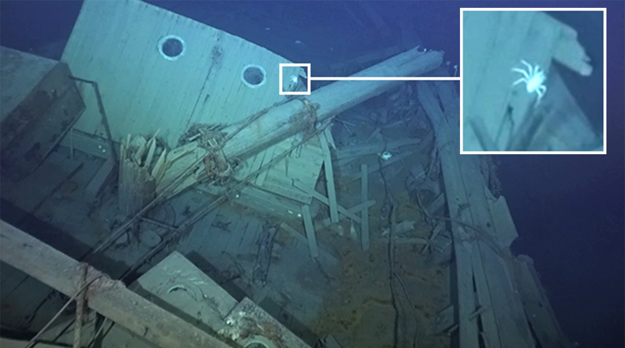 Z kolei Katrin Linse z British Antarctic Survey zauważyła białe stworzenie, które znajduje się na bulaju zatopionego statku. Naukowiec początkowo uznała je za kraba, jednak Antarktyka nie słynie z dużej liczebności dziesięcionogów takich jak krewetki, kraby czy homary.