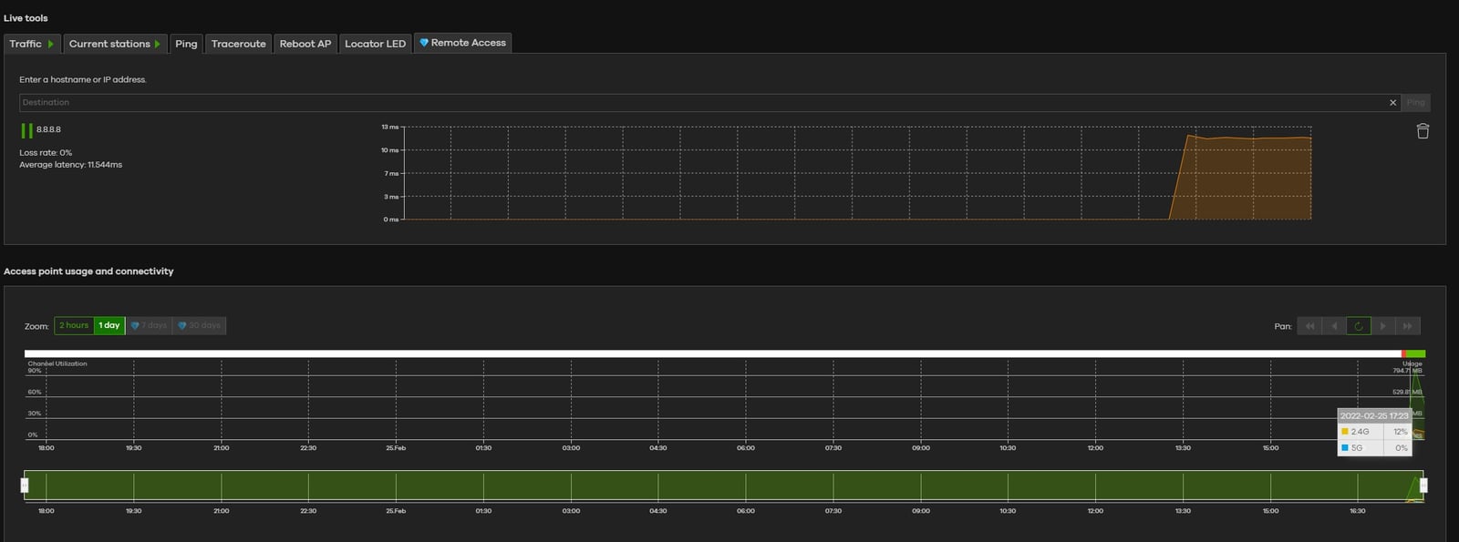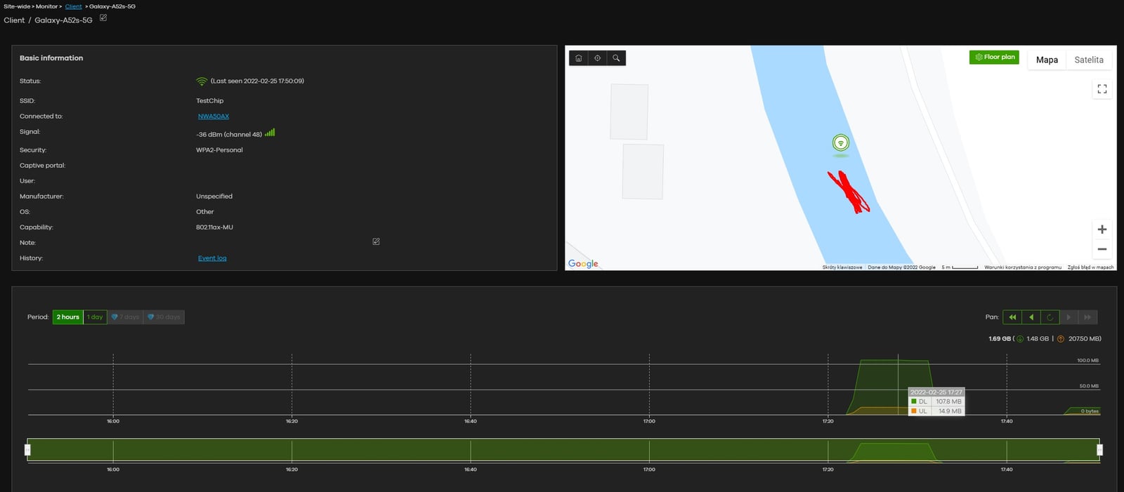Panel główny aplikacji Nebula (wyszarzone lub oznaczone diamencikiem opcje wymagają dodatkowo płatnej subskrypcji) pozwala przede wszystkim ustawić podstawowe parametry sieci bezprzewodowej, ale posiada też funkcje Smart Steering, pozwalającą dostosować dokładniej zachowanie poszczególnych pasm częstotliwości, jak również harmonogram Dynamics Channel Switching. Nie zabrakło panelu podsumowań, który bezpośrednio wskazuje na zużycie danego węzła sieciowego i naszych klientów (dołączonych urządzeń) z dokładnymi informacjami na ich temat (również lokalizacją).