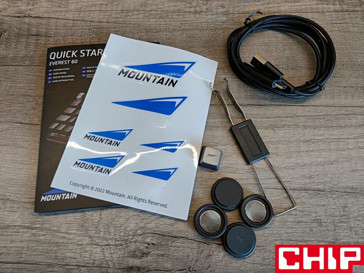 A co w zestawie? Sporo, bo dodatkowy szary keycap, cztery dodatkowe podkładki magnesowe na podstawę, 160-cm przewód USB-A w nylonowym oplocie, klucz do ściągania przełączników i klawiszy, zestaw naklejek i instrukcja obsługi. W przypadku wspomnianego modułu z blokiem numerycznym możecie liczyć również na łącznie trzy pary magnesowych podkładek do zwiększenia kąta nachylenia klawiatury.