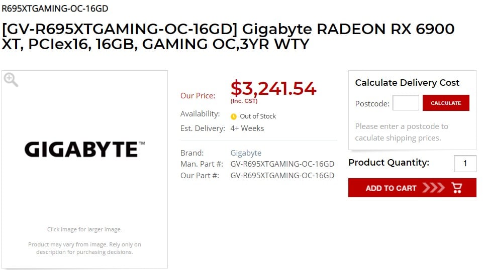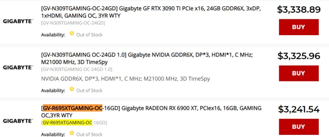 Powyżej możecie podejrzeć, że w ofercie sklepu MegaBuy znalazł się tylko pozornie “kolejny RX 6900 XT”. W rzeczywistości to faktyczna karta graficzna Radeon RX 6950 XT, co zdradza nam tylko numer kodowy odpowiadający właśnie temu, który Gigabyte zgłosiło do komisji (GV-R695XTGAMING-OC-16GD). Cena tego modelu wynosi niebywałe 3241 dolarów australijskich, co po obliczeniach (usunięcie VATu, przeliczenie na dolary amerykańskie) sugeruje MSRP na poziomie 2150 dolarów.