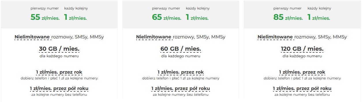 W przypadku ofert dla firm działanie promocji wygląda tak samo, różnią się tylko kwoty. Pierwszy abonament musi być w kwocie minimum 39 zł netto, a kolejny, którego cena zostanie obniżona do złotówki, za minimum 45 zł netto miesięcznie. Jego cena w ofercie ze smartfonem jest obniżana na 12 miesięcy, a bez smartfonu na 6 miesięcy. Z kolei po zakończeniu promocji, wysokość rabatu w programie smartFIRMA to 25 zł netto miesięcznie. W ofercie dla firm promocja abonamentu za złotówkę może objąć do trzech dodatkowych numerów.