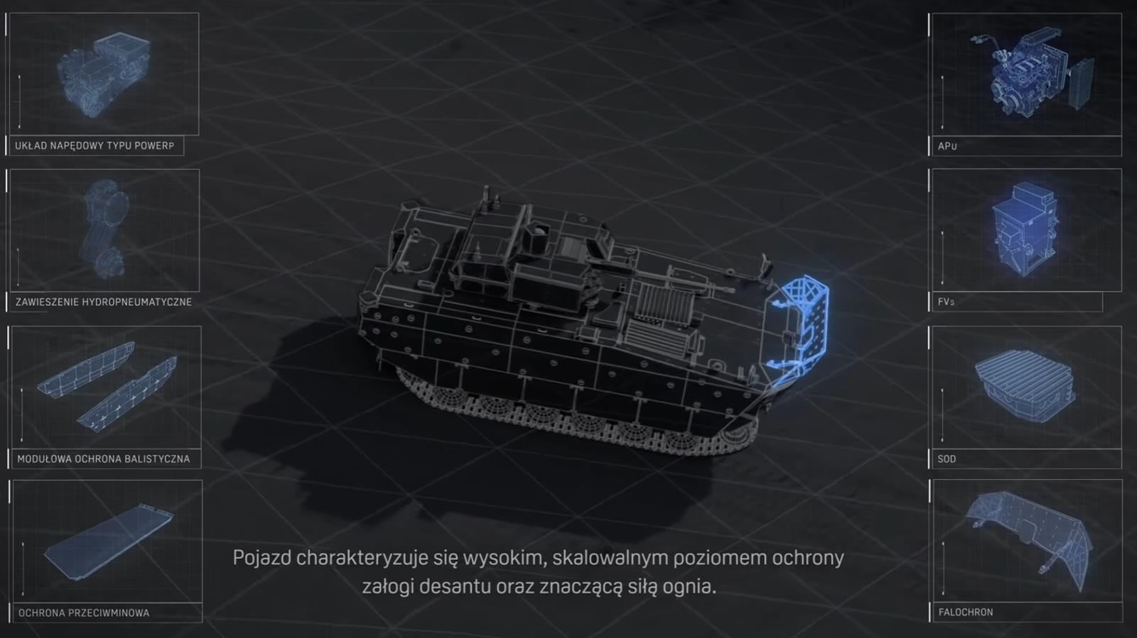 Warto podkreślić, że wieża ZSSW-30 jest sporym kawałkiem rodzimej technologii, bo łączy przeznaczony dowódcy GOD-1 i GOC-1 dla celowniczego, czyli polskie stabilizowane głowice optoelektroniczne z kamerami termowizyjnymi i telewizyjnymi, dalmierzem laserowym oraz systemem samoobrony SSP-1 Obra. Ten obejmuje osiem wyrzutni maskujących granatów multispektralnych, umożliwiających wprowadzenie w błąd wrogich pocisków.