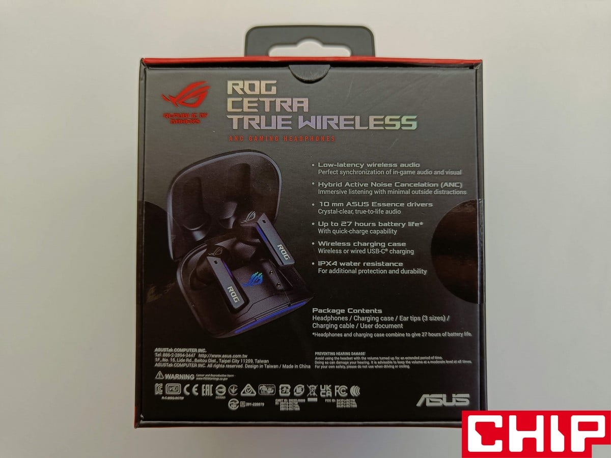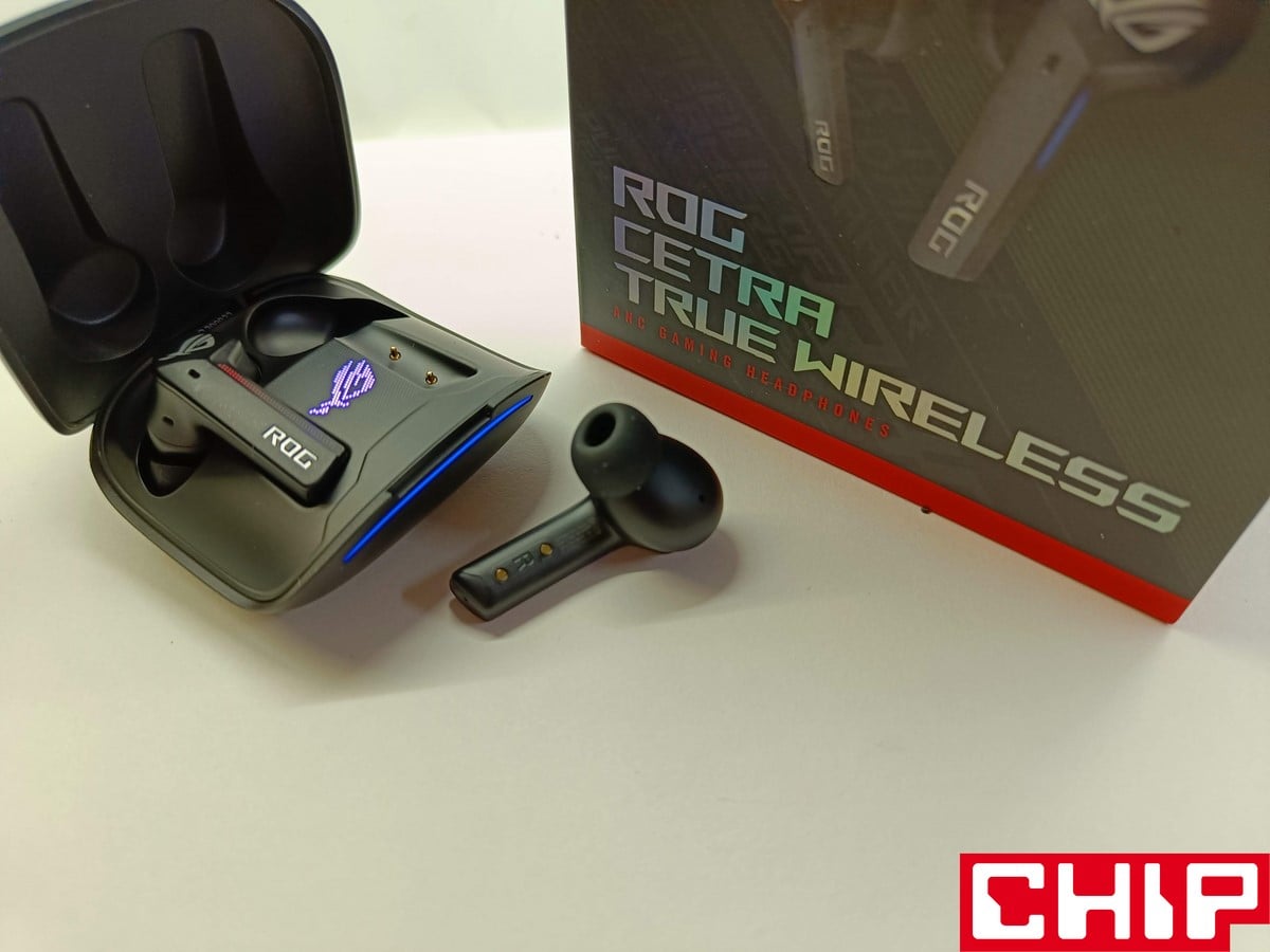 Gamingowe słuchawki TWS to obecnie rzadkość na rynku, bo większość producentów ogranicza się na tym poletku do zapewnienia klientom trybu gry, pozostając przy bardziej tradycyjnej formie i wzornictwie. ASUS, jak to ASUS, nie miał zamiaru iść w półśrodki i z ROG Cetra True Wireless poszedł na całość, stawiając na mariaż bijącego rekordy popularności formatu słuchawek z gamingowym charakterem. Widać to już etui, którego wnętrze jest jednoznacznym wyznacznikiem tego, że mamy do czynienia ze sprzętem dla graczy.
