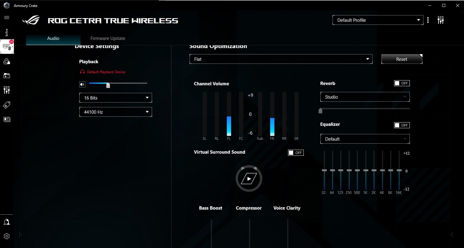 Jak na sprzęt przeznaczony do gier przystało, ASUS Zadbał o to, aby w ROG Cetra True Wireless nie występował problem rozjazdu między dźwiękiem, a obrazem. O ile ten problem jest dosyć rzadki w przypadku filmów, tak przy grach zaczyna często się pojawiać i za jego zminimalizowanie odpowiada specjalny tryb gry, obniżający opóźnienia najczęściej kosztem zasięgu połączenia, co podczas grania nie jest oczywiście problemem.