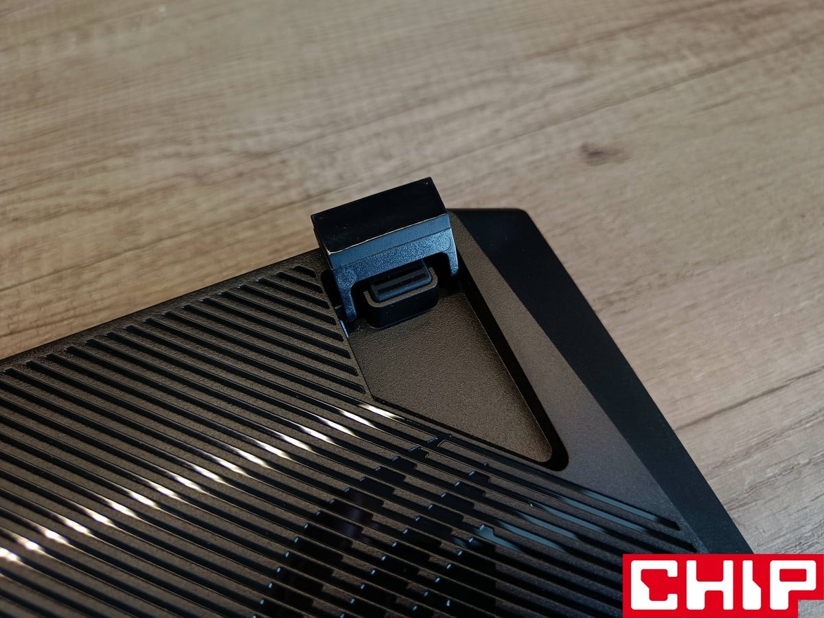 Gamingowy charaktery klawiatury buduje nawet podstawa z tworzywa sztucznego z licznymi ozdobami. Na niej znalazły się przede wszystkim solidne nóżki z solidnymi gumkami antypoślizgowymi otoczone szeregiem wytłoczeń. Jednak te najważniejsze elementy znalazły się na tylnej krawędzi tego modelu, bo to właśnie tam znajdziemy lukę do przechowywania odbiornika USB, przełącznik trybów działania oraz port USB-C służący do ładowania oraz komunikacji ze sprzętem połączonym przewodowo.