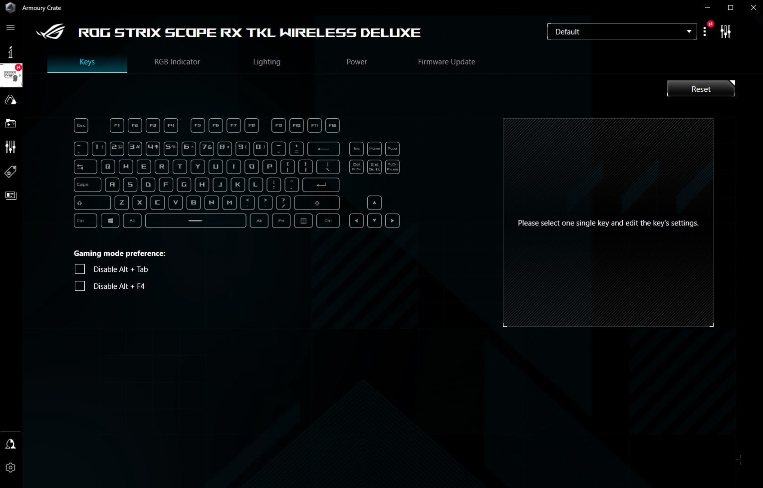 W kwestii funkcji i dodatków nie zabrakło wbudowanej pamięci dla 6 profili, 100% pozbycia się zjawiska Ghostingu i gwarancji odczytania każdego klawisza niezależnie od liczby wciśniętych w danym momencie (N-Key Rollover). Poza tym ASUS ROG Strix Scope RX TKL Wireless umożliwia nagrywanie makr z poziomu klawiatury, a wiele funkcji ukrytych pod klawiszami (głównie cyfr i strzałek) umożliwia bezproblemowe przełączanie się między profilami, parowanie z maksymalnie 3 urządzeniami po Bluetooth 5.2, czy zmienianie efektu podświetlenia.