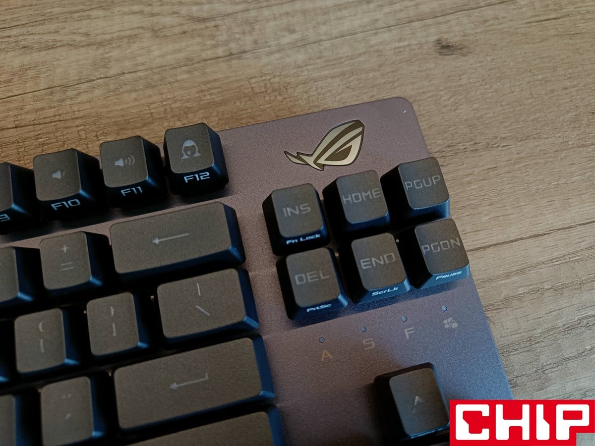 Poza tym świetne wrażenie robi niestandardowa czcionka i… tutaj tak naprawdę wchodzimy po raz pierwszy na to, co w ROG Strix Scope RX TKL Wireless Deluxe może się nie podobać. Trudno bowiem zrozumieć, co popchnęło projektantów do uznania, że zamiana klawiszy od F5 do F12 na przyciski multimedialne ma jakikolwiek sens. Oczywiście dostęp do nich ciągle mamy z poziomu kombinacji, albo możemy rozwiązać ten problem z wykorzystaniem aplikacji, ale po prostu nie wydaje się to zbyt rozsądne.