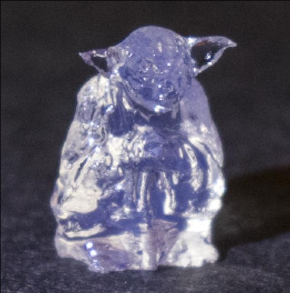 Metoda objętościowa może być stosowana do wytwarzania obiektów o dowolnym kształcie, nie ma żadnych ograniczeń. Dlatego inżynierowie postawili sobie ambitny cel i wydrukowali malutką figurkę Yody. Jej produkcja zajęła zaledwie 20 sekund! To spektakularny wynik. Dla porównania, wytworzenie podobnego obiektu w procesie drukowana przestrzennego zajęłoby ok. 10 minut.