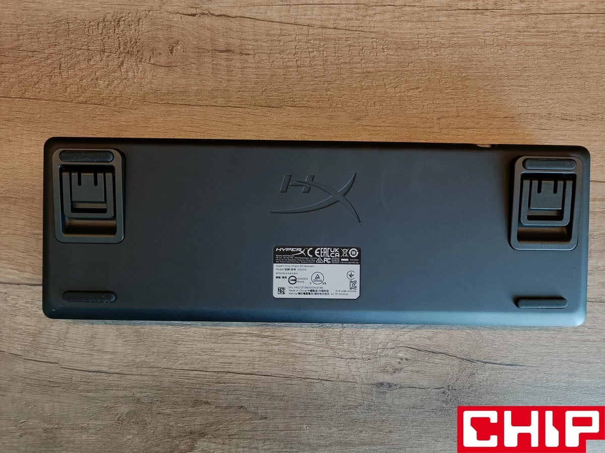 Ogólna bryła HyperX Alloy Origins 65 jest w zupełności płaska, posiada zaokrąglone rogi, a budujące ją panele są połączone za pomocą połączeń, które do pewnego urozmaicają design klawiatury. Finalnie jedynymi elementami z tworzyw sztucznego, pomijając przełączniki i klawisze, są elementy na spodzie klawiatury. Obejmują one zarówno cztery grube podkładki antypoślizgowe, jak i rozbudowany system regulacji nachylenia.