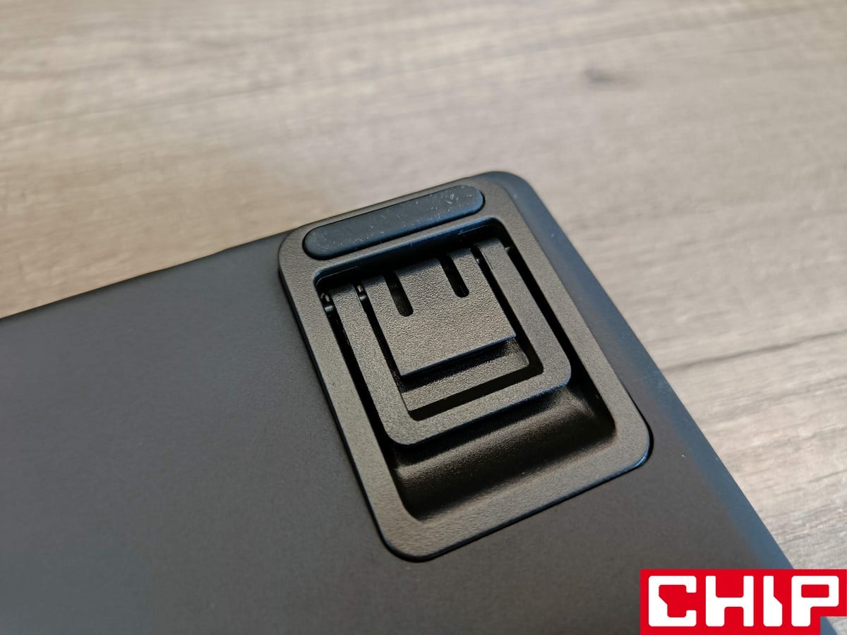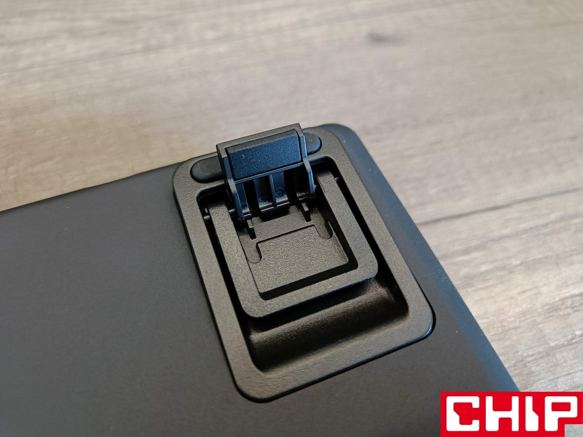 Ten natywnie zapewnia 3-stopniowe nachylenie, ale po wychyleniu mniejszego zestawu nóżek już 7-stopniowe, a w trzecim całe 11-stopniowe. Same w sobie nóżki posiadają własne gumki antypoślizgowe, są grube i sprawiają wrażenie solidnych nawet w kwestii mechanizmu składania i rozkładania.